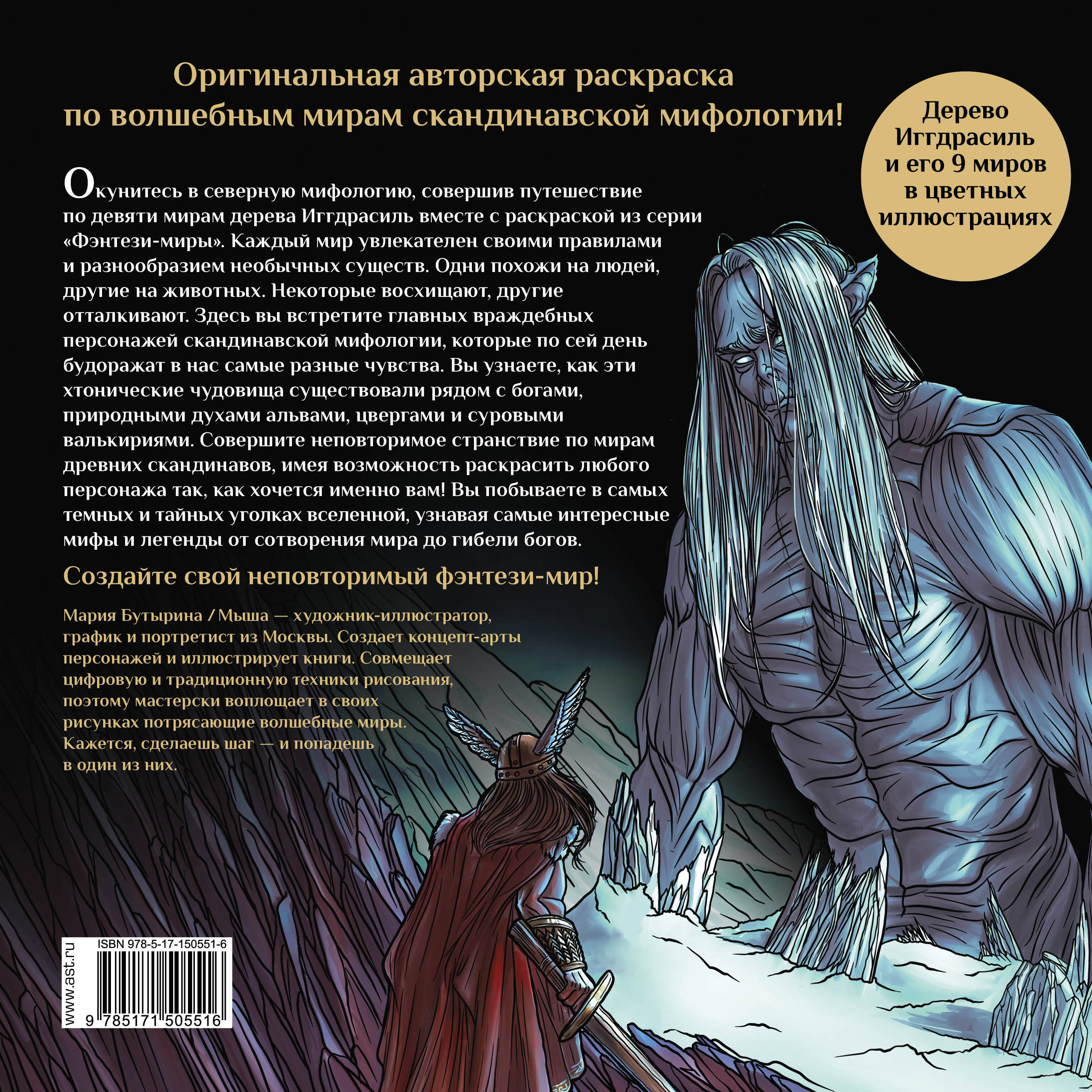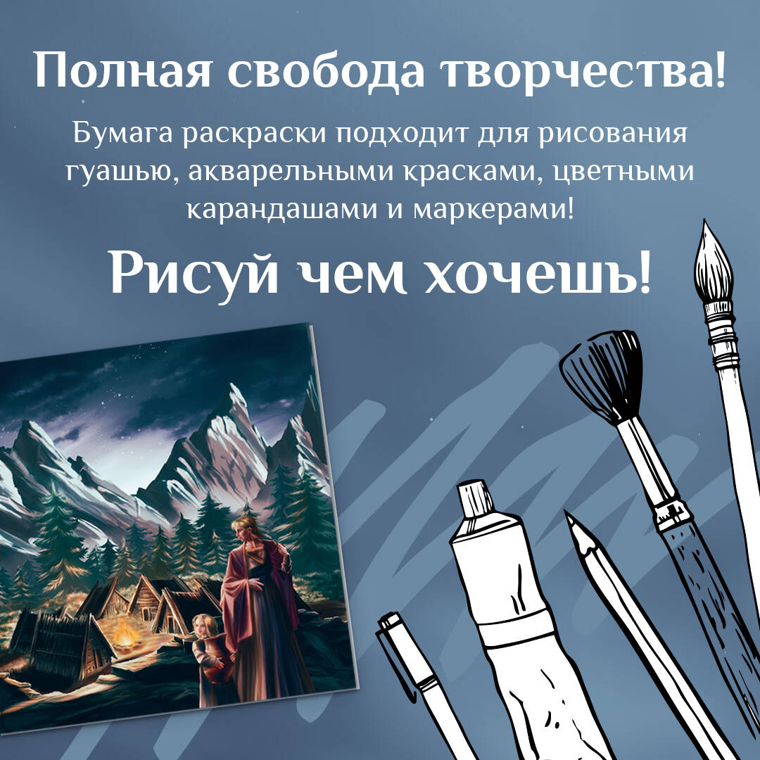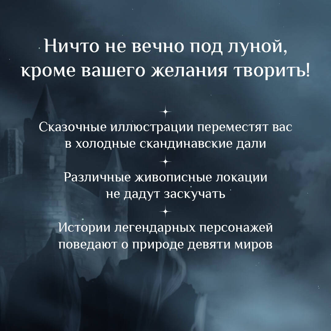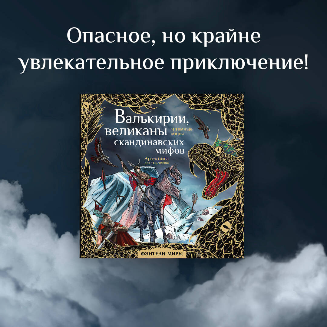 От вездесущего Рагнарёка нас спасут лишь только ваши выдающиеся творческие способности... Посетите каждый из девяти миров Иггдрасиля и добавьте цвета героям скандинавского фольклора с новой раскраской «Валькирии, великаны и темные миры скандинавских мифов» из серии «Фэнтези-миры. Арт-книга». Вас ожидают кардинально отличающиеся друг от друга пейзажи: от ослепительных просторов Асгарда - скандинавского рая - до темного царства мертвых Хельхейма. Помимо увлекательных рассказов о мифических локациях и героях раскраска содержит в себе авторские иллюстрации высокой детализации для закрашивания. Используйте гуашь, акварель, маркеры или карандаши для точной передачи настроения скандинавской эстетики!| Издательство | ИЗДАТЕЛЬСТВО "АСТ" |