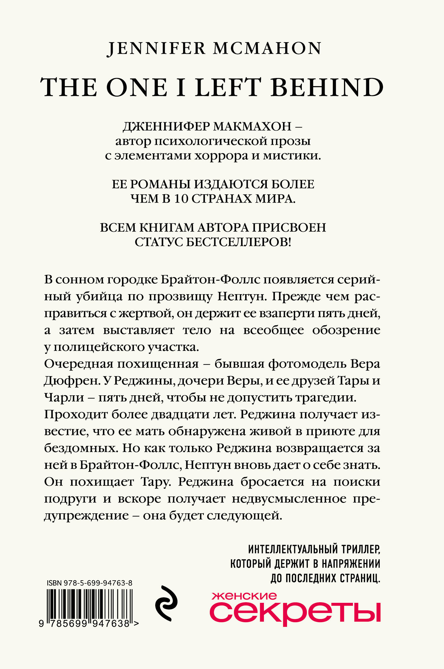 В сонном городке Брайтон-Фоллс появляется серийный убийца по прозвищу Нептун. Прежде чем расправиться с жертвой, он держит ее взаперти пять дней, а затем выставляет тело на всеобщее обозрение у полицейского участка. Очередная похищенная - бывшая фотомодель Вера Дюфрен. У Реджины, дочери Веры, и ее друзей Тары и Чарли - пять дней, чтобы не допустить трагедии. Проходит более двадцати лет. Реджина получает известие, что ее мать обнаружена живой в приюте для бездомных. Но как только Реджина возвращается за ней в Брайтон-Фолс, Нептун вновь дает о себе знать. Он похищает Тару. Реджина бросается на поиски подруги и вскоре получает недвусмысленное предупреждение - она будет следующей.| Издательство | ООО "Издательство "Эксмо" |