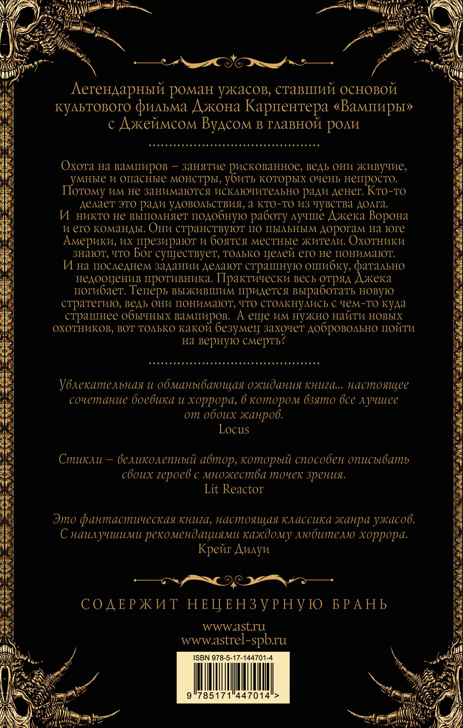 Увлекательная и обманывающая ожидания книга... настоящее сочетание боевика и хоррора, в котором взято все лучшее от обоих жанров. Locus Охота на вампиров - занятие рискованное, ведь они живучие, умные и опасные монстры, убить которых очень непросто. Потому им не занимаются исключительно ради денег. Кто-то делает это ради удовольствия, а кто-то из чувства долга. И никто не выполняет подобную работу лучше Джека Ворона и его команды. Они странствуют по пыльным дорогам на юге Америки, их презирают и боятся местные жители. Охотники знают, что Бог существует, только целей его не понимают. И на последнем задании делают страшную ошибку, фатально недооценив противника. Практически весь отряд Джека погибает. Теперь выжившим придется выработать новую стратегию, ведь они понимают, что столкнулись с чем-то куда страшнее обычных вампиров. А еще им нужно найти новых охотников, вот только какой безумец захочет добровольно пойти на верную смерть?| Издательство | АСТ |