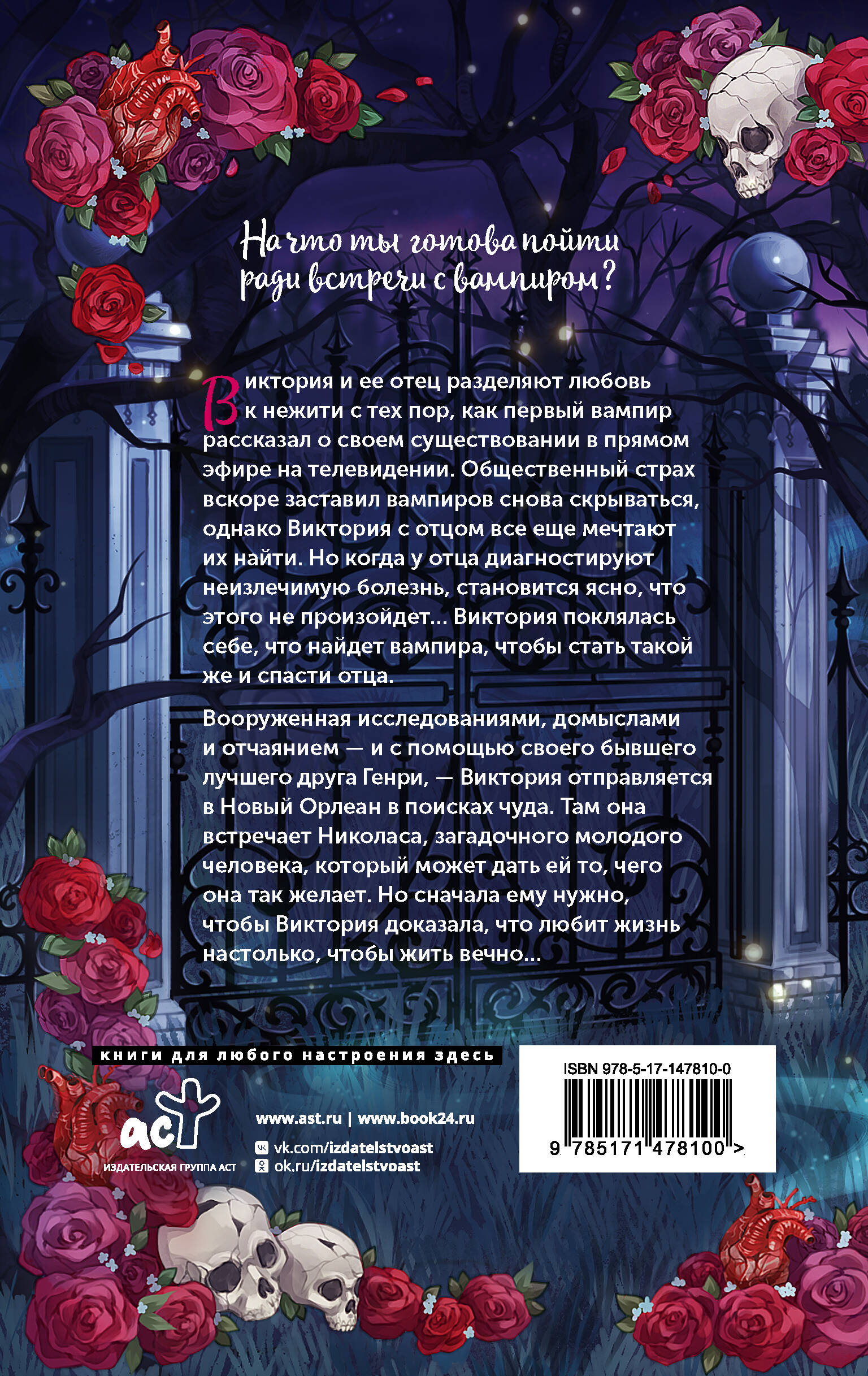 Блестящий дебютный роман, в котором «Самая холодная девушка в Колдтауне» Холли Блэк встречает «В конце они оба умрут» Адама Сильверы! В равной степени позитивная и душераздирающая история взросления о вампирах и истинном секрете вечной жизни - любви! Бестселлер жанра молодежного фэнтези и финалист премии ALA Morris! Виктория и ее отец всегда мечтали встретить вампиров - с того самого момента, как услышали об их существовании по ТВ. Но теперь у отца диагностирую рак в терминальной стадии, и встрече не суждено состояться. Виктория цепляется за последнюю надежду спасти папу - встретить вампира, чтобы быть обращенной. А потом обратить и отца, подарив тому вечную жизнь. В поисках настоящего вампира она отправляется в Новый Орлеан, где встречает Николаса - парня, который может сделать ее план реальностью. Но чтобы это произошло она должна доказать, что испытывает радость от жизни. Веселиться, когда умирает самый близкий человек, кажется кощунством. Но выхода нет. А значит, ей придется научиться испытывать счастье и скорбь одновременно…