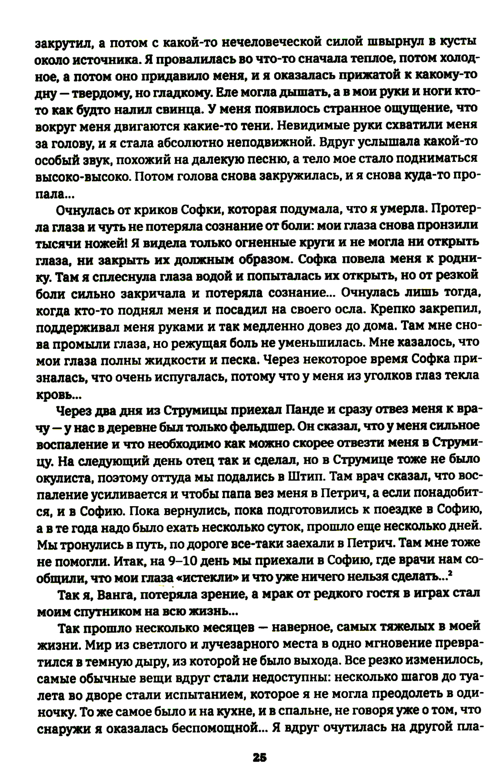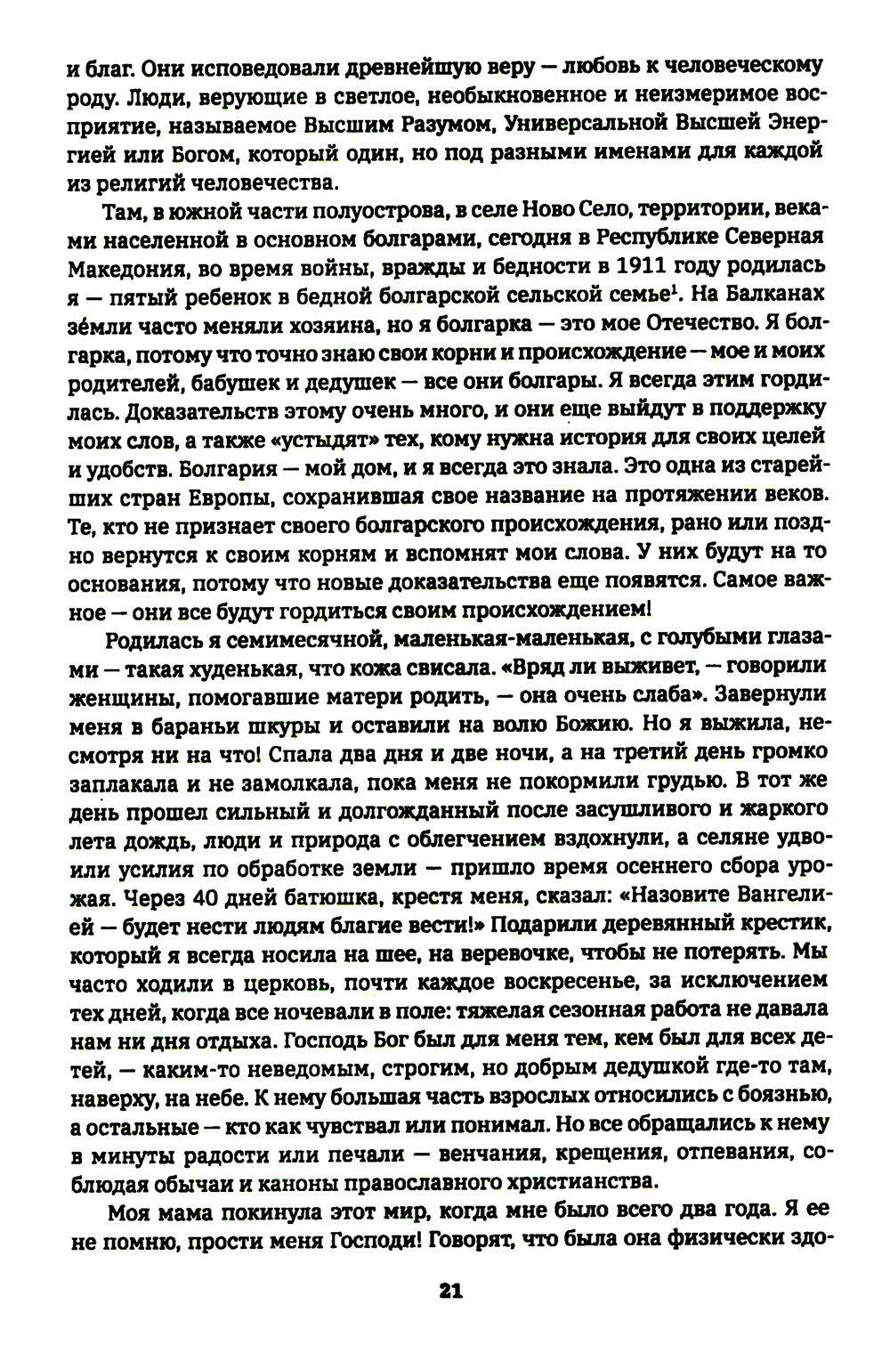 Человечество всегда хотело, чтобы родился некто, кто бы мог войти в те уголки знаний, где прошлое и будущее сливаются и становятся одним целым. Оно ждало его появления веками, а когда он появился, то не признало его) Ванга прожила среди нас почти 90 лет, но нам хотелось еще и еще. Ее дара нам было недостаточно, чтобы мы признали ее Вестницей Вселенной и Высшего Разума. Мы заставили ее долгие годы бороться с неверием и слухами, ждали от нее все больших и больших чудес, нам было мало тех десятков тысяч людей, которым она помогла, которым она подарила еще несколько лет жизни, надежду и частичку Вселенной над нами. Мы хотели еще больше Божественного, еще больше бесспорных пророчеств, еще больше нечеловеческих «подвигов» и величия... А она смиренно сидела на Рулите, в своем маленьком домике из нескольких маленьких комнат, с маленьким садиком перед домом и ежедневно показывала нам Божию силу и величие, скрытые в ее любви к людям и стремлении помогать всем - до последнего вздоха!| Издательство | Издание книг ком |