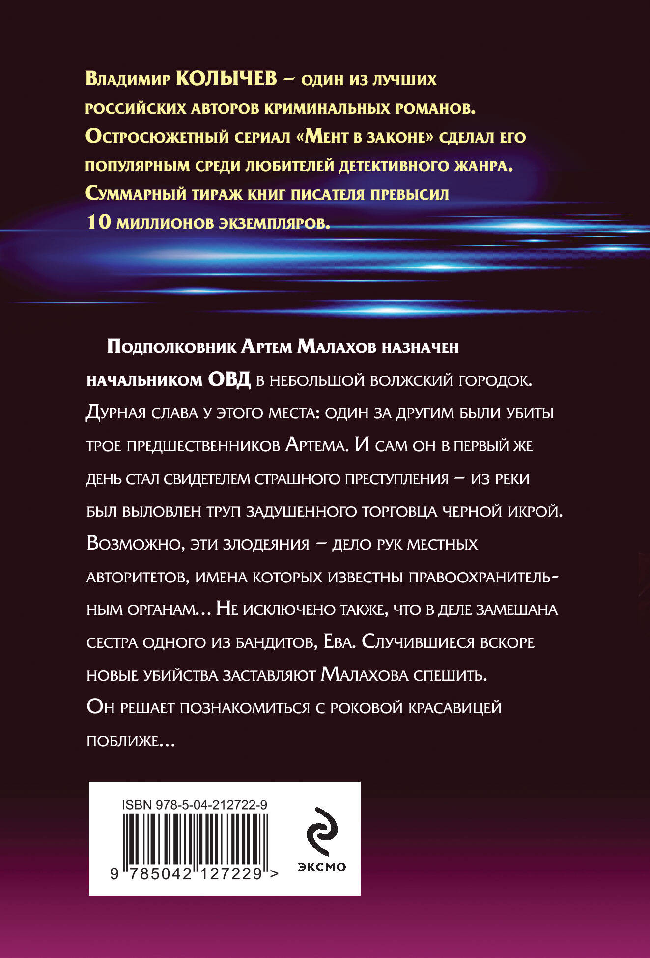 Автор-сила, автор-любовь, автор-ностальгия - по временам, когда миром правили крутые понятия и настоящие мужики. Увлекательные криминальные романы для всех возрастов. Суммарный тираж книг этого автора - более 13 миллионов экземпляров. Подполковник Артем Малахов назначен начальником ОВД в небольшой волжский городок. Дурная слава у этого места: один за другим были убиты трое предшественников Артема. И сам он в первый же день стал свидетелем страшного преступления - из реки был выловлен труп задушенного торговца черной икрой. Возможно, эти злодеяния - дело рук местных авторитетов, имена которых известны правоохранительным органам... Не исключено также, что в деле замешана сестра одного из бандитов, Ева. Случившиеся вскоре новые убийства заставляют Малахова спешить. Он решает познакомиться с роковой красавицей поближе…| Издательство | ООО "Издательство "Эксмо" |