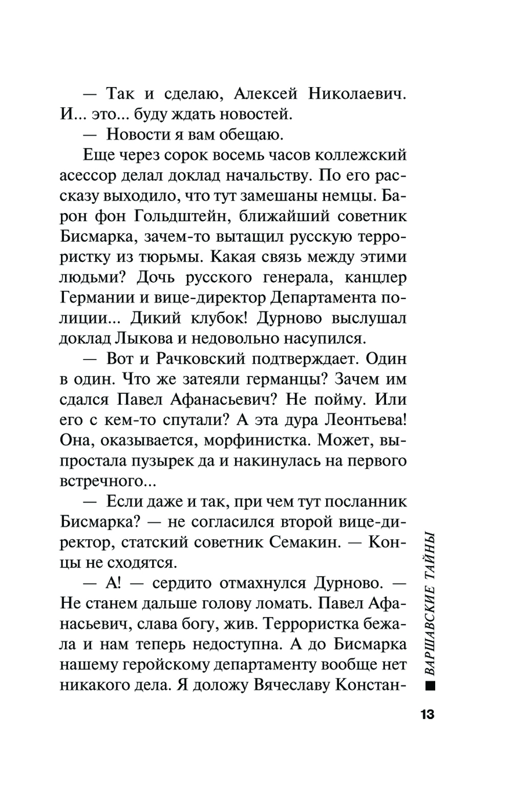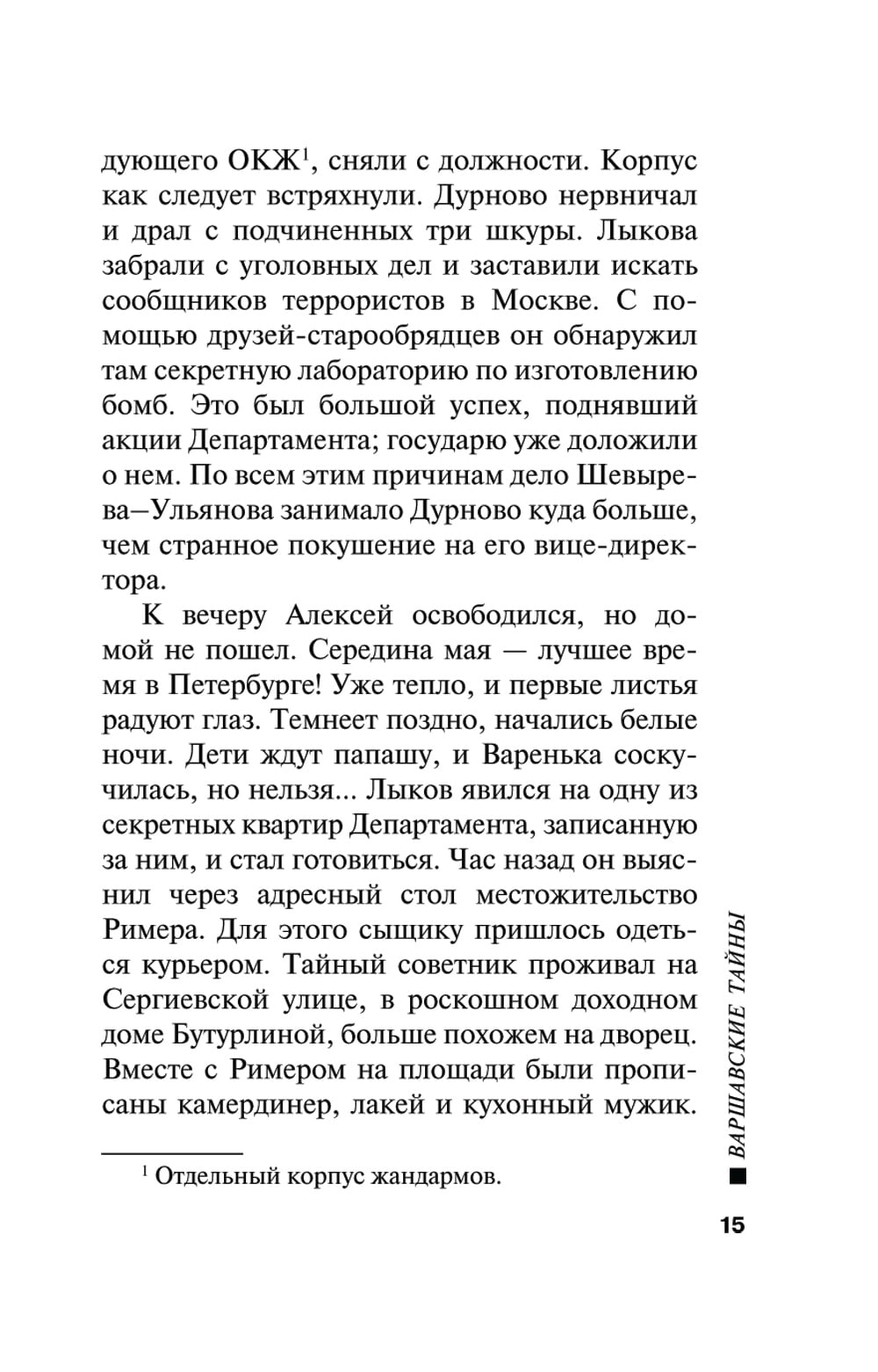 Коллежскому асессору Алексею Лыкову не суждено почивать на лаврах, наслаждаясь уютом родного очага в кругу детей и красавицы-жены. Служба снова призывает его на опасное задание. На сей раз Лыкову предстоит отправиться в Варшаву и расследовать несколько преступлений. Зверски убиты русские офицеры - брошены с распоротыми животами умирать. Всё это власти легко списали бы на обычных уголовников, если бы не упрямство Лыкова, который, рискуя жизнью, сумел раскрыть заговор государственного масштаба.