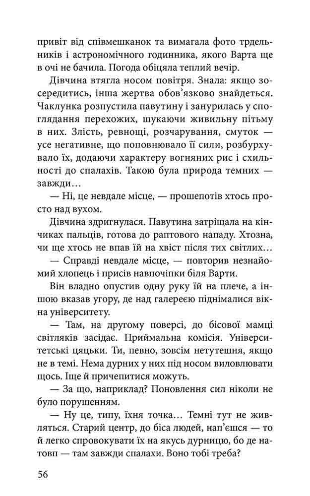УКРАЇНСЬКЕ ФЕНТЕЗІ Продовження міського фентезі «Варта у Грі» Гра у Львові закінчилася - темна чаклунка Варта Тарновецька врятувала життя новому знайомому, дізналася найбільшу таємницю свого минулого і принагідно долучилася до перевороту в магічному правлінні. Отож, сповнені ентузіазму, Варта зі Златаном прибувають до Праги, щоби офіційно заступити на посади Вартових Центральноєвропейського конгломерату. Та виявляється, що на шляху до мети ще багато перепон. Могутні судді виплітають нові інтриги, вибори глави насуваються, а втрачені артефакти остаточно забирають спокій. Тим часом у празькій спільноті ширяться чутки про невловимих викрадачів, які полюють на світлих і темних. Легенди оживають на старовинних вуличках, де кожен крок озивається небезпекою. У незнайомому місті Варті потрібно пізнати все наново: кому вірити, а кого остерігатися? Яка темрява ховається за посмішкою Златана? А головне - чи вдасться дійти до кінця і заплатити ціну перемоги, не зруйнувавши себе? Чому варто читати: «Варта у Грі. Артефакти Праги» - це справжня знахідка для поціновувачів міського фентезі. Роман наповнений таємницями, містикою, магією та інтригами, які вирують у чарівній та загадковій Празі. Видання увійшло до короткого списку «БараБука» ТОП-2019. Авторка: Наталія Матолінець - львівська письменниця, володарка чималої кількості нагород. Перша книга про чаклунку Варту - роман «Варта у Грі» - здобула спецвідзнаку конкурсу «Крилатий лев-2017» за новаторський пошук у жанрі міського фентезі, диплом конкурсу «Львівські перехрестя» та відзнаку порталу «БараБука» в номінації «Дебют року в прозі-2018». Книги та оповідання авторки були перекладені чеською, польською та англійською мовами. У червні 2023 року Наталія стала лауреаткою премії «Єврокон» (нагорода «Кризаліс» - вручається письменнику або художнику, який яскраво заявив про себе дебютними творами). Також є мерч до серії - набір поштівок.| Дата выпуска | 0000-00-00 |