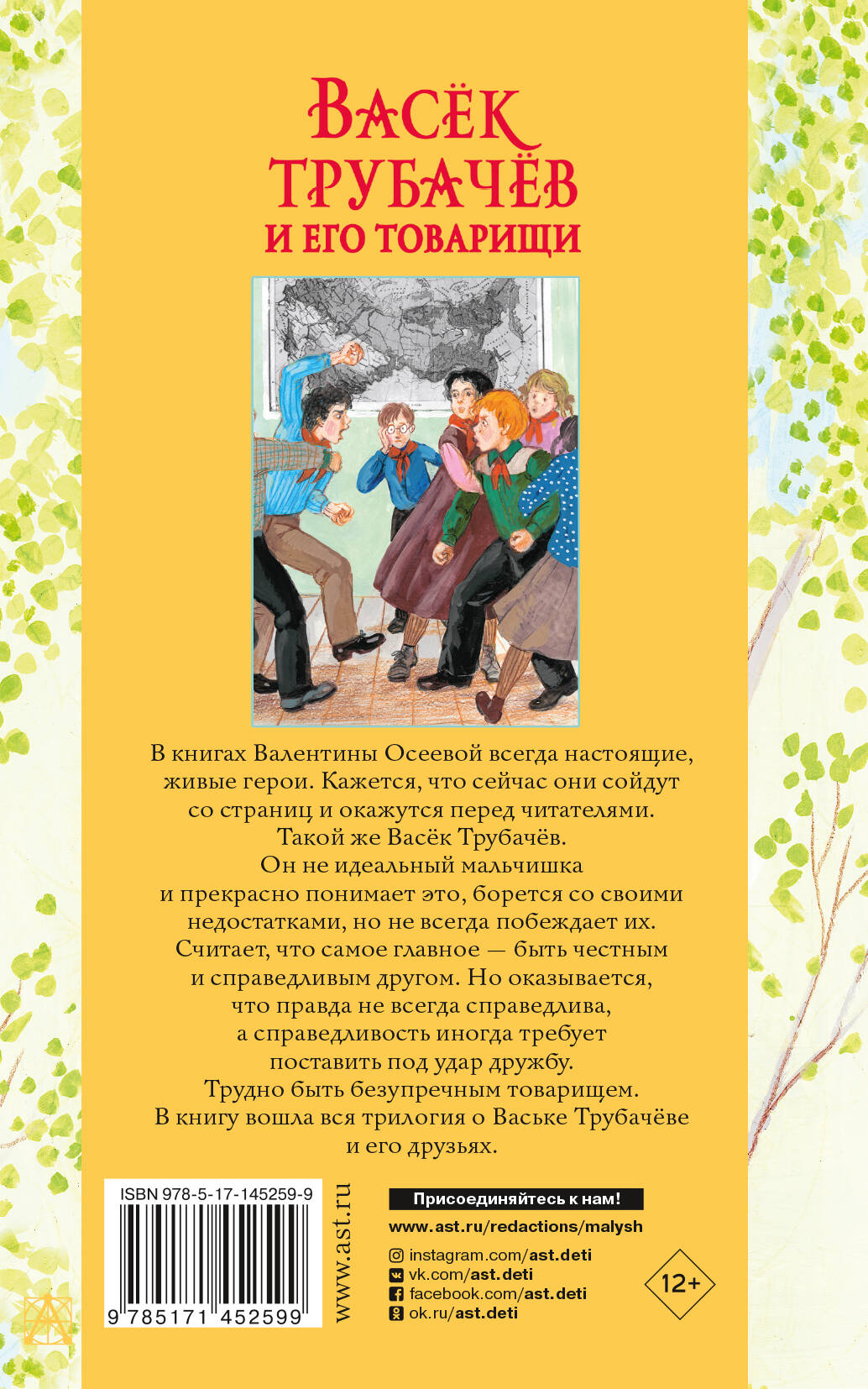 Валентина Осеева долгое время была воспитателем и педагогом, работала с беспризорниками. Тогда же она начала писать. В 1947-1951 годах была написана трилогия "Васёк Трубачёв и его товарищи". В нашу книгу вошли все три части. Васёк и его друзья - самые обычные мальчишки, они дружат, ссорятся, мечтают выиграть в конкурсе и получить путёвку на Украину. Во второй части их мечта сбывается, полные надежд ребята отправляются на Украину. Но это лето 1941 года. Вместо весёлых каникул их ждёт внезапная война… В третьей части повзрослевшие дети, чудом вернувшиеся в свой родной город, восстанавливают школу и надеются на мирную жизнь. "Васёк Трубачёв и его товарищи" - книга о взрослении и становлении человека, которая будет интересна, как детям, так и взрослым. В 1955 и в 1957 году первые две части романа были экранизированы ("Васёк Трубачёв и его товарищи" и "Отряд Трубачёва сражается"). Для среднего школьного возраста.