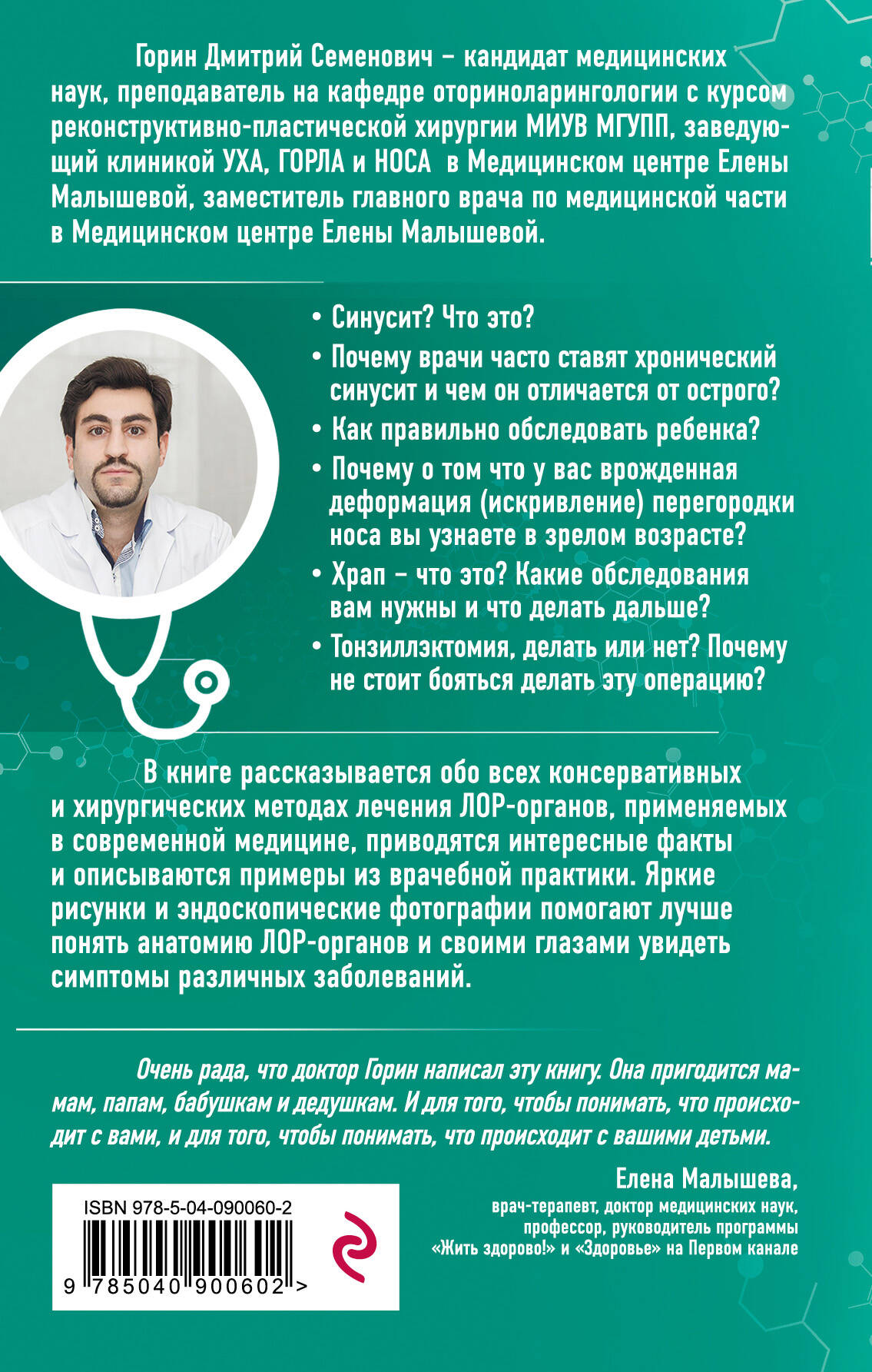 Об авторе Дмитрий Горин - известный московский врач, оториноларинголог, кандидат медицинских наук, эксперт популярной программы «Жить здорово» с Е. Малышевой на Первом канале. Жанр Научно-популярная медицина, здоровье. О книге «Ваш семейный ЛОР. Случаи из врачебной практики» - это настольная книга каждого человека, кто заботится о своем здоровье. Каждый ежегодно сталкивается с болезнями уха, горла, носа: отит, синусит, насморк, боли в горле, фарингит и т.д. Автор доступно и подробно объясняет особенности строения лор-органов, способы диагностики и главное эффективные методы лечения. Большое внимание при этом уделено детскому здоровью, так как именно дети чаще всего подвержены различным ОРВИ и ОРЗ. Особенности Главное преимущество книги заключается в том, что автор очень понятно объясняет сложные медицинские термины и анатомические особенности, простым и доступным, «человеческим» языком. А также использует различные рисунки и фотографии, помогающие разобраться, что к чему и своими глазами увидеть симптомы различных заболеваний. Рецензия Елены Васильевны Малышевой, врача-терапевта, доктора медицинских наук, профессора, руководителя программы «Жить здорово» на Первом канале: «Дмитрий Семенович Горин - замечательный доктор. Он родился и вырос в медицинской семье. Это прекрасная династия врачей. Доктор Горин - выпускник Московской медицинской академии имени Сеченова, врач-отоларинголог. Болезни уха, горла и носа он изучал в Научно-исследовательском клиническом институте оториноларингологии им. Л.И. Свержевского. Это одна из лучших ЛОР клиник нашей страны. Его кандидатская диссертация была посвящена уникальной технологии лечения гайморита без разрезов и проколов. Как ЛОР-врач он работает и с детьми, и со взрослыми. Внимательный, грамотный и очень профессиональный подход к каждому пациенту независимо от возраста - это отличительная черта Дмитрия Семеновича. Он стажировался в Германии в Университетской Клинике города Тюбинген, где осваивал уникальную методику баллонной синусопластики. Стажировался в Америке, в Институте Ухо, Горла и Носа Нью-Йорка, где обучался проведению минимально инвазивной хирургии. Очень рада, что доктор Горин написал эту книгу. Она пригодится мамам, папам, бабушкам и дедушкам. И для того, чтобы понимать, что происходит с вами, и для того, чтобы понимать, что происходит с вашими детьми. Болезни уха, горла и носа сопровождают нас всю жизнь. Читайте, находите ответы на ваши вопросы и знайте, что хорошие доктора всегда могут просто и ясно рассказать о сложном устройстве нашего организма. Уверена, что книга поможет очень многим людям стать здоровее и не растеряться, когда с вашим организмом что-то пошло не так».| Издательство | ООО "Издательство "Эксмо" |