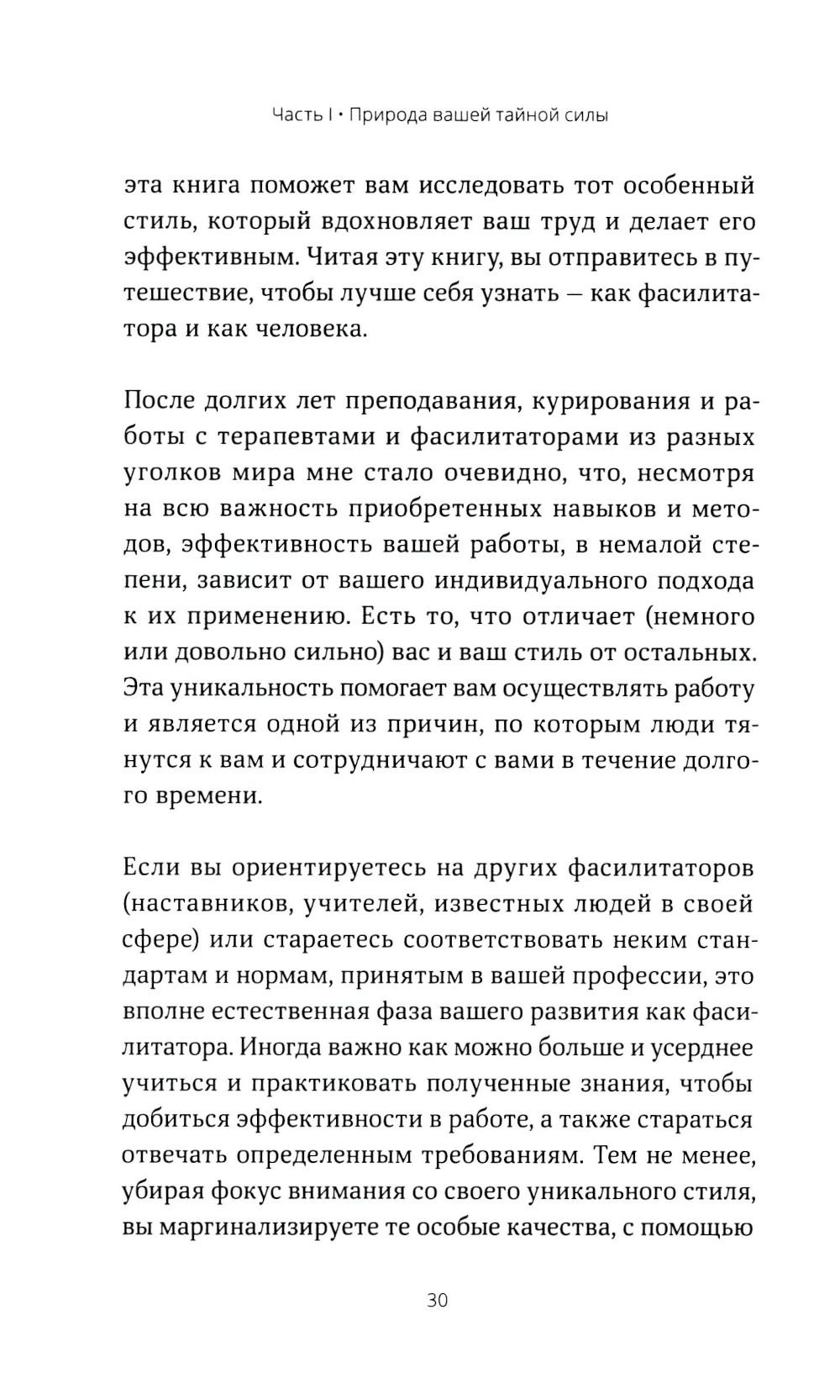 Книга о том, как обнаружить источник своей особенной силы и эффективно к нему подключаться. Здесь описаны красота вашего уникального стиля и то, как ваши необычные, странные, «искривленные» черты отражают ключевые аспекты вашего неповторимого метода работы. Описан и процесс обучения фасилитатора, даны ключи к вашему уникальному стилю. Автор подробно разбирает различные составляющие вашего стиля и показывает, как они перетекают друг в друга, как ваш общий стиль фасилитации связан с вашим личным мифом, с паттернами самых ранних ваших сновидений или воспоминаний, как наиболее эффективно применять свой уникальный стиль в работе и жизни. Многочисленные упражнения помогут изучить, как ваш стиль работает на практике. Книга будет полезна психологам, фасилитаторам, коучам, социальным работникам, духовным наставникам, медикам, учителям, бизнес-консультантам и всем, кто связан с помогающими профессиями. Основные принципы и методики, собранные здесь, можно применять как в публичных выступлениях, так и в работе, связанной с административным руководством, юриспруденцией и так далее.| Издательство | Изд. Ганга |