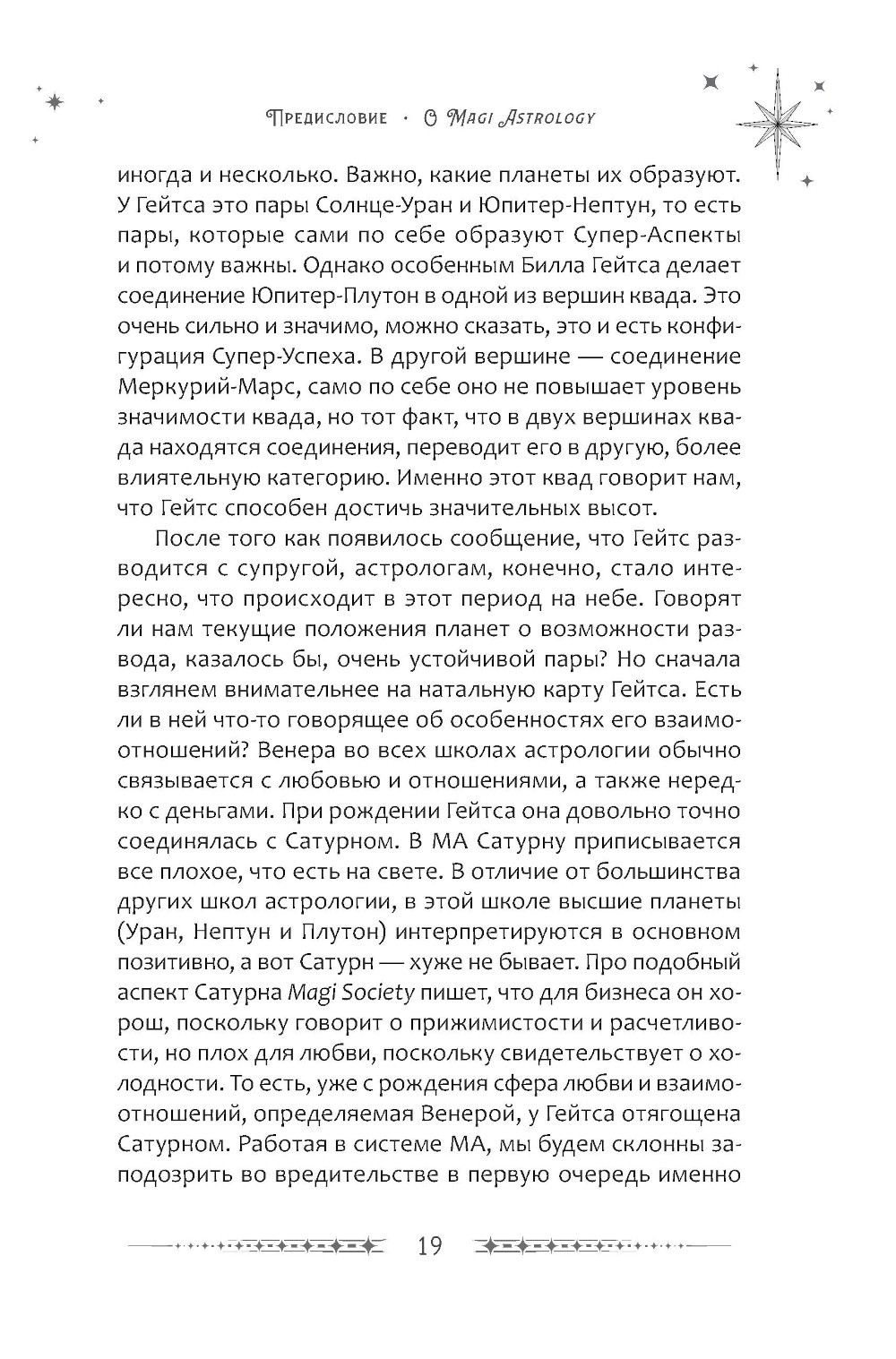 В книге представлено большое количество иллюстраций и разборов натальных карт знаменитостей: актеров, спортсменов, изобретателей и т.д. Все эти материалы будут замечательным подспорьем в работе профессиональных астрологов, а также тех, кто только начинает изучение науки о звездах.