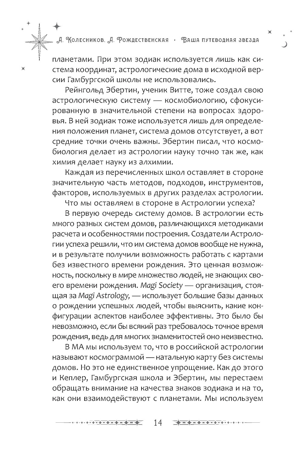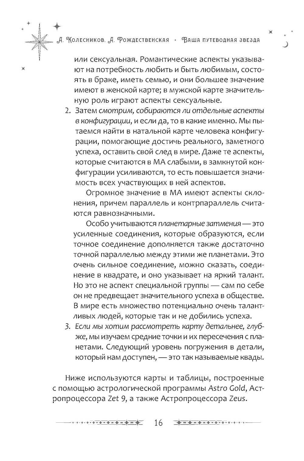 В своей новой книге Александр Колесников и Алина Рождественская рассказывают об астрологии успеха - направлении в науке о звездах, которое позволяет рассчитать периоды особенного счастья и везения. В профессиональной литературе они называются «Ворота Золушки». Этот красивый образ точно описывает, как может поменяться жизнь, если вы сумеете правильно подготовиться к времени удачи. Для этого нужно будет построить свою натальную карту и посмотреть, есть ли аспекты между определенными планетами. Такой анализ позволит максимально полно реализовать свой потенциал, а также раскрыть все свои таланты.