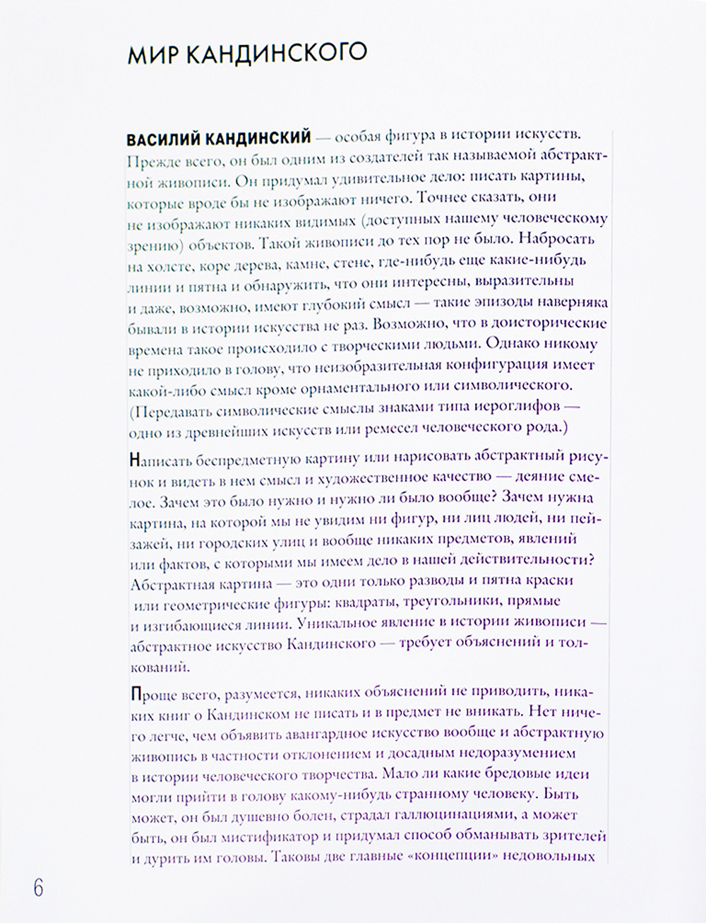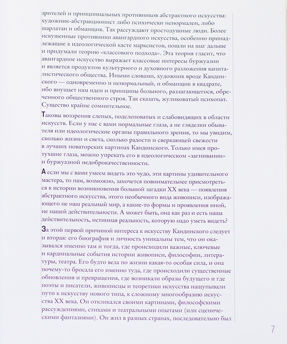 Книга рассматривает творчество Василия Кандинского в сложном единстве его видов, жанров и стилей - от реалистических пейзажей и портретов до абстрактных полотен зрелого и позднего периодов, от абсурдистских стихов до театральных сцен и сценографических опытов и до философских текстов в области теории искусства. Разнообразное наследие мастера представлено в историческом контексте. Речь идет о так называемом избавлении от реальности (или Большом Отказе от видения реального в искусстве). Этот важнейший перелом в развитии художественной культуры увязывается с кризисом идеократического сознания на рубеже XIX и XX веков, с так называемым онтологическим поворотом в разных искусствах - от поэзии до живописи. Кандинский оказался той творческой личностью, которая соприкасалась с ключевыми тенденциями и явлениями в искусстве России и Западной Европы. Он был свидетелем и участником авангардных революций в Германии и России, наблюдал и переживал в своей судьбе тяжкие последствия фатального социально-политического эксперимента Советской власти, был вынужден бежать из нацистской Германии и испытал драматические события немецкой оккупации Франции. Перед нами биография творческой личности, равновеликой сложнейшей и драматичной эпохе рубежа столетий и первой половины ХХ века. Издание адресовано широкому кругу любителей искусства.| Издательство | Искусство - XXI век |