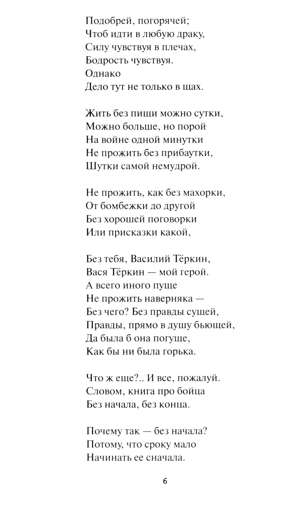 В книгу замечательного поэта Александра Трифоновича Твардовского (1910-1971) вошли его лучшие произведения - поэмы «Василий Тёркин» и «Тёркин на том свете», а также стихи военных лет. Простой рядовой, бойкий, бывалый солдат Тёркин - собирательный, эпически ёмкий образ русского солдата Великой Отечественной войны 1941-1945 гг. Через гибкие поэтические строки автору удалось донести до читателя богатство натуры героя. Картины, исполненные огромного трагизма, перемежаются проникновенными лирическими отступлениями или лукавой, сердечной шуткой.| Издательство | Вече |
