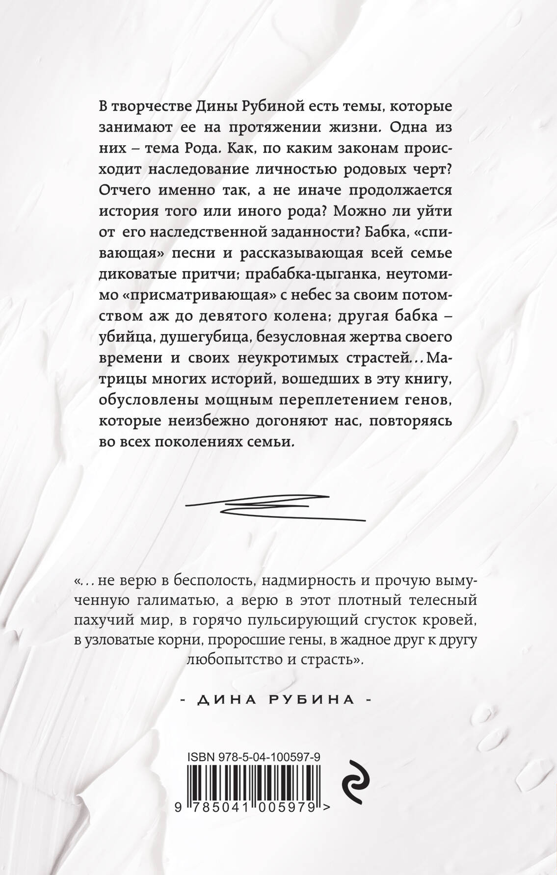 В творчестве Дины Рубиной есть темы, которые занимают ее на протяжении жизни. Одна из них - тема Рода. Как, по каким законам происходит наследование личностью родовых черт? Отчего именно так, а не иначе продолжается история того или иного рода? Можно ли уйти от его наследственной заданности? Бабка, "спивающая" песни и рассказывающая всей семье диковатые притчи; прабабка-цыганка, неутомимо "присматривающая" с небес за своим потомством аж до девятого колена; другая бабка - убийца, душегубица, безусловная жертва своего времени и своих неукротимых страстей…Матрицы многих историй, вошедших в эту книгу, обусловлены мощным переплетением генов, которые неизбежно догоняют нас, повторяясь во всех поколениях семьи.| Издательство | ООО "Издательство "Эксмо" |
