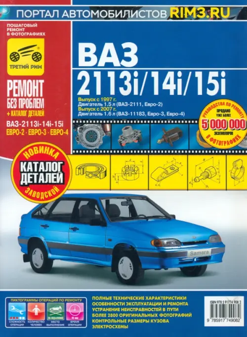 Предлагаем вашему вниманию руководство по ремонту и эксплуатации с каталогом деталей автомобиля ВАЗ-2113i-14i-15i, выпуск с 1997 г. (бензиновый двигатель ВАЗ-2111 объемом 1,5 л) и с 2007 г. (бензиновый двигатель ВАЗ-11183 объемом 1,6 л).