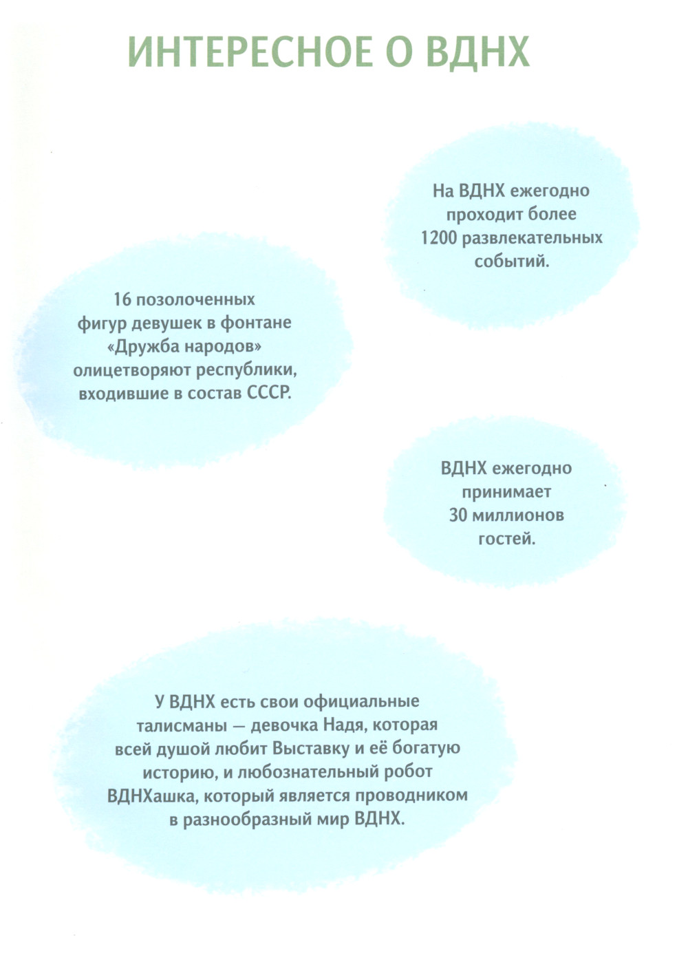 Эта книга рассказывает, сколько людей разных профессий трудится на ВДНХ, чтобы она была благоустроена, дарила положительные эмоции, была комфортна и безопасна для посетителей. Вы узнаете, кто летом отвечает за цветники и фонтаны парковой территории, а зимой - за работу катка. Книга знакомит с 79 профессиями, которые очень нужны на ВДНХ.| Издательство | Детская и юношеская книга |