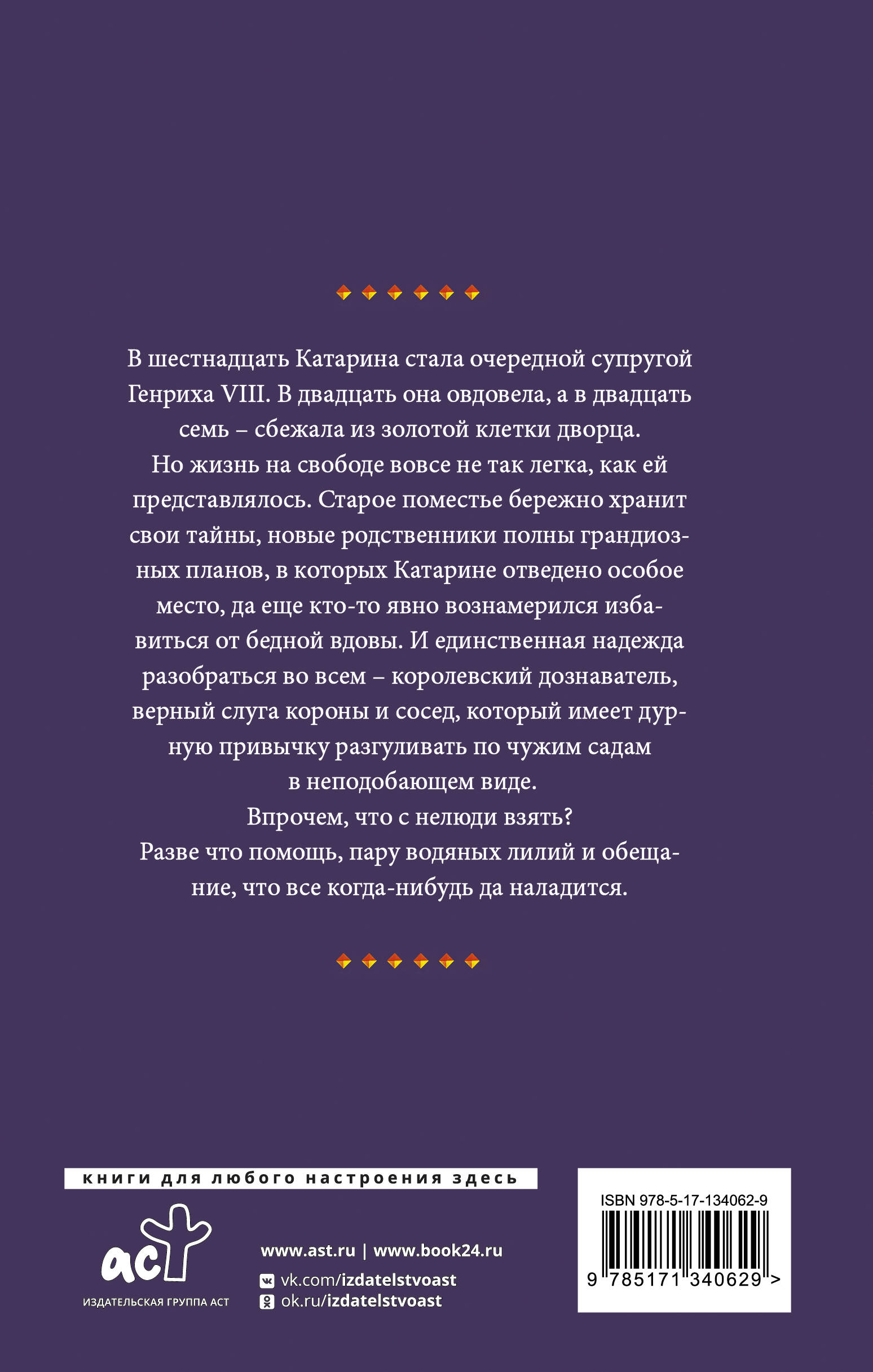 В шестнадцать Катарина стала очередной супругой Генриха VIII. В двадцать она овдовела, а в двадцать семь - сбежала из золотой клетки дворца. Но жизнь на свободе вовсе не так легка, как ей представлялось. Старое поместье бережно хранит свои тайны, новые родственники полны грандиозных планов, в которых Катарине отведено особое место, да еще кто-то явно вознамерился избавиться от бедной вдовы. И единственная надежда разобраться во всем - королевский дознаватель, верный слуга короны и сосед, который имеет дурную привычку разгуливать по чужим садам в неподобающем виде. Впрочем, что с нелюди взять? Разве что помощь, пару водяных лилий и обещание, что все когда-нибудь да наладится.| Издательство | АСТ |
