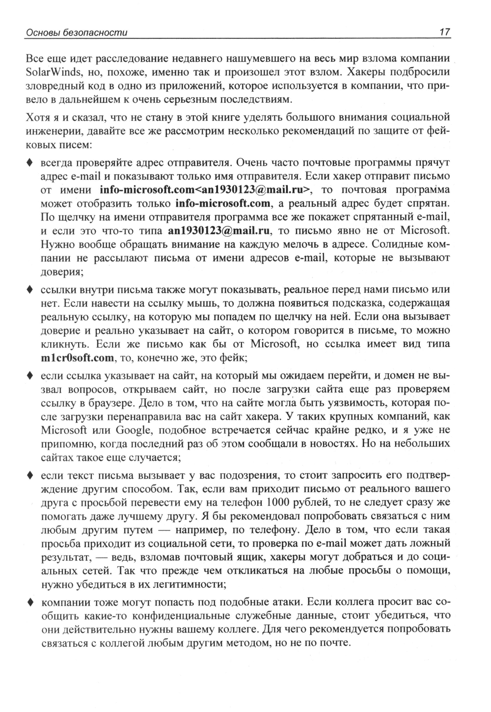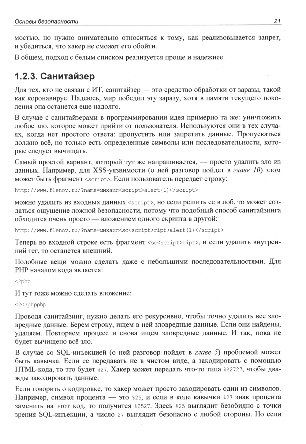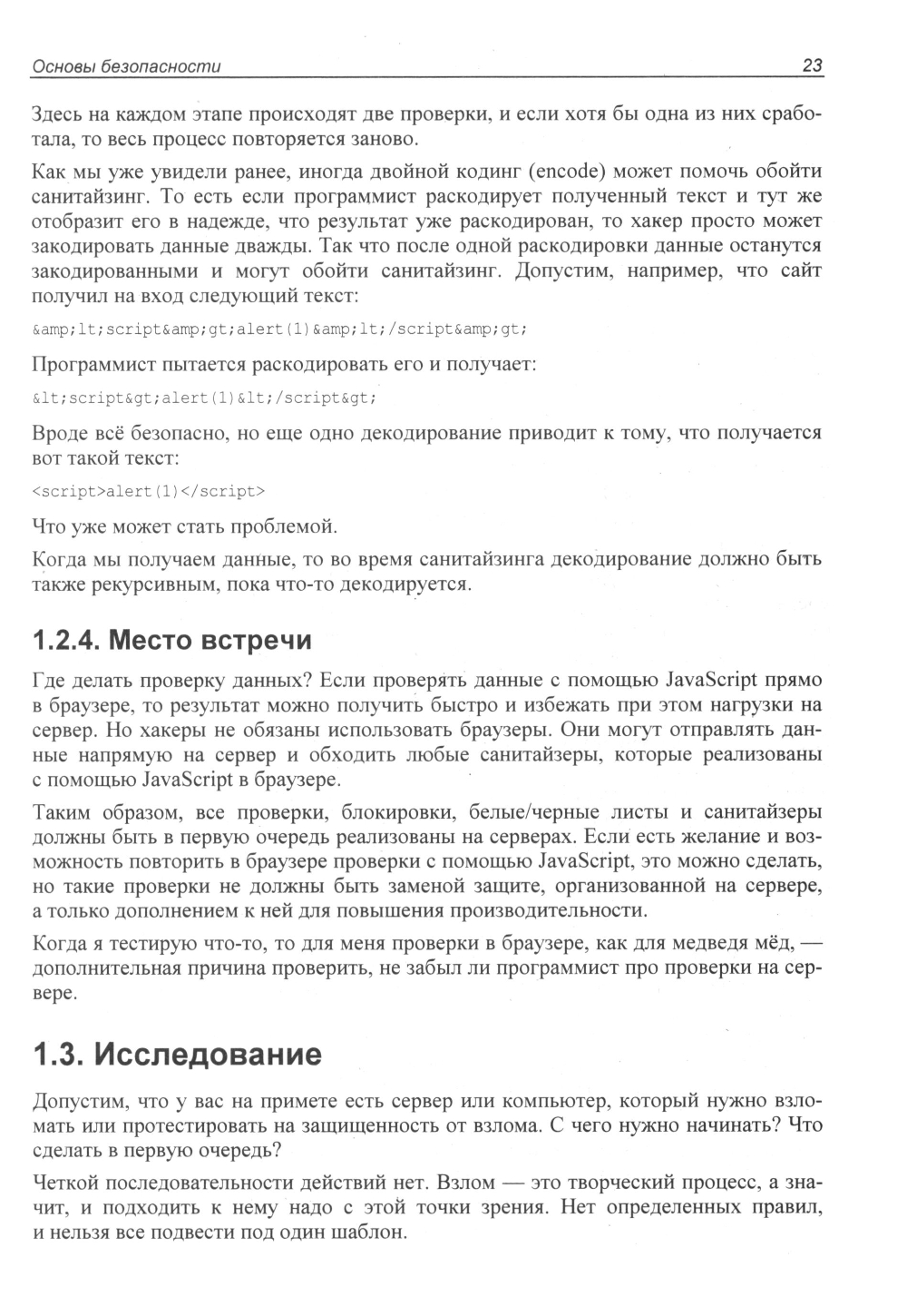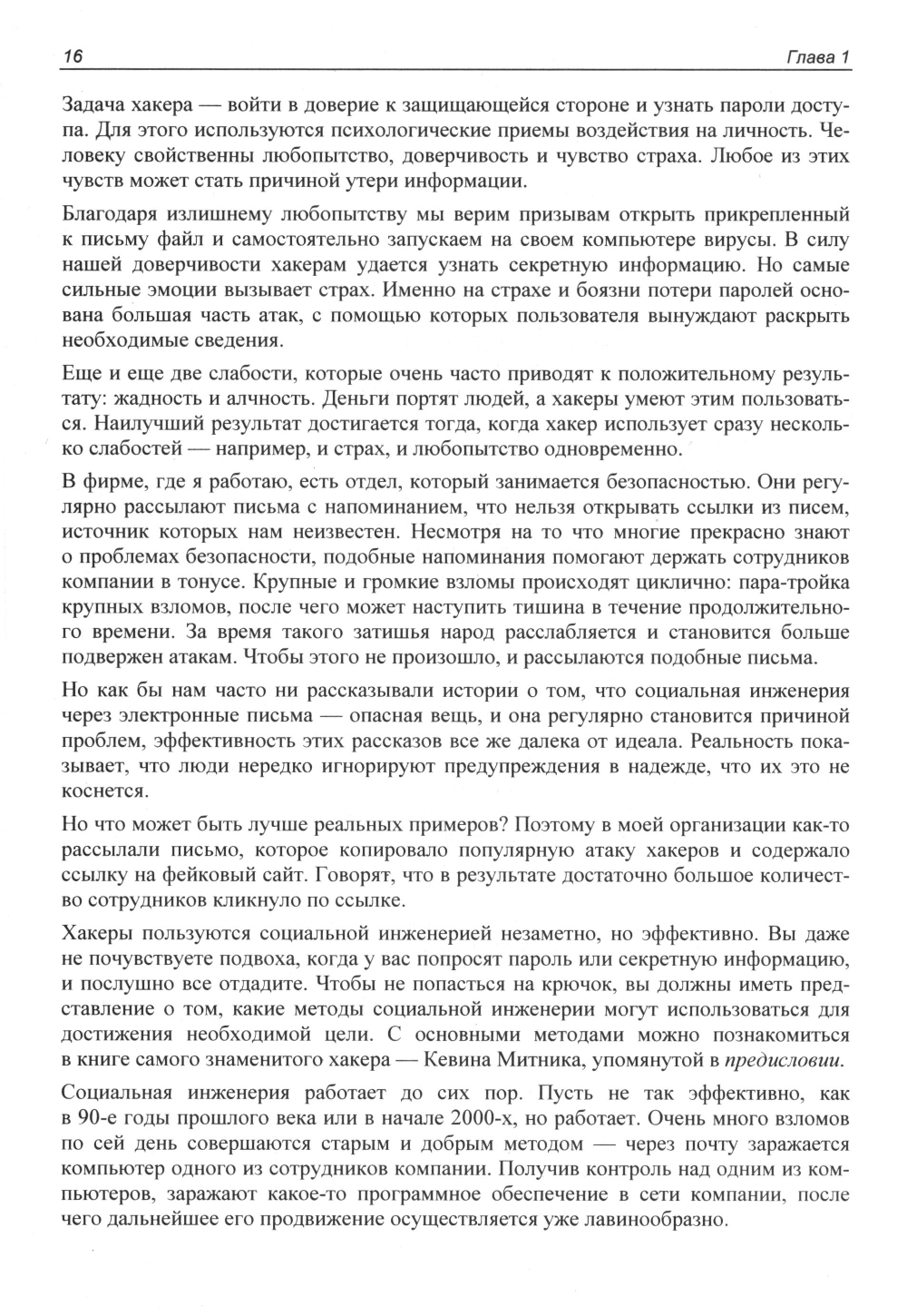 Рассмотрена система безопасности веб-серверов и типичные ошибки, совершаемые разработчиками при написании веб-приложений. Приведены примеры взлома реальных сайтов, имеющих уязвимости, в том числе и популярных. В теории и на практике рассмотрены распространенные хакерские атаки: DoS, SQL-инъекции, межсайтовый скриптинг, использование CSRF- и XSS-уязвимости, обход аутентификации и др. Представлены основные приемы защиты от атак и рекомендации по написанию безопасного программного кода, настройка и способы обхода каптчи. В четвертом издании рассмотрены новые примеры реальных ошибок, наиболее актуальные уязвимости, показаны современные виды хакерских атак и методы защиты от них.| Издательство | BHV(БХВ) |