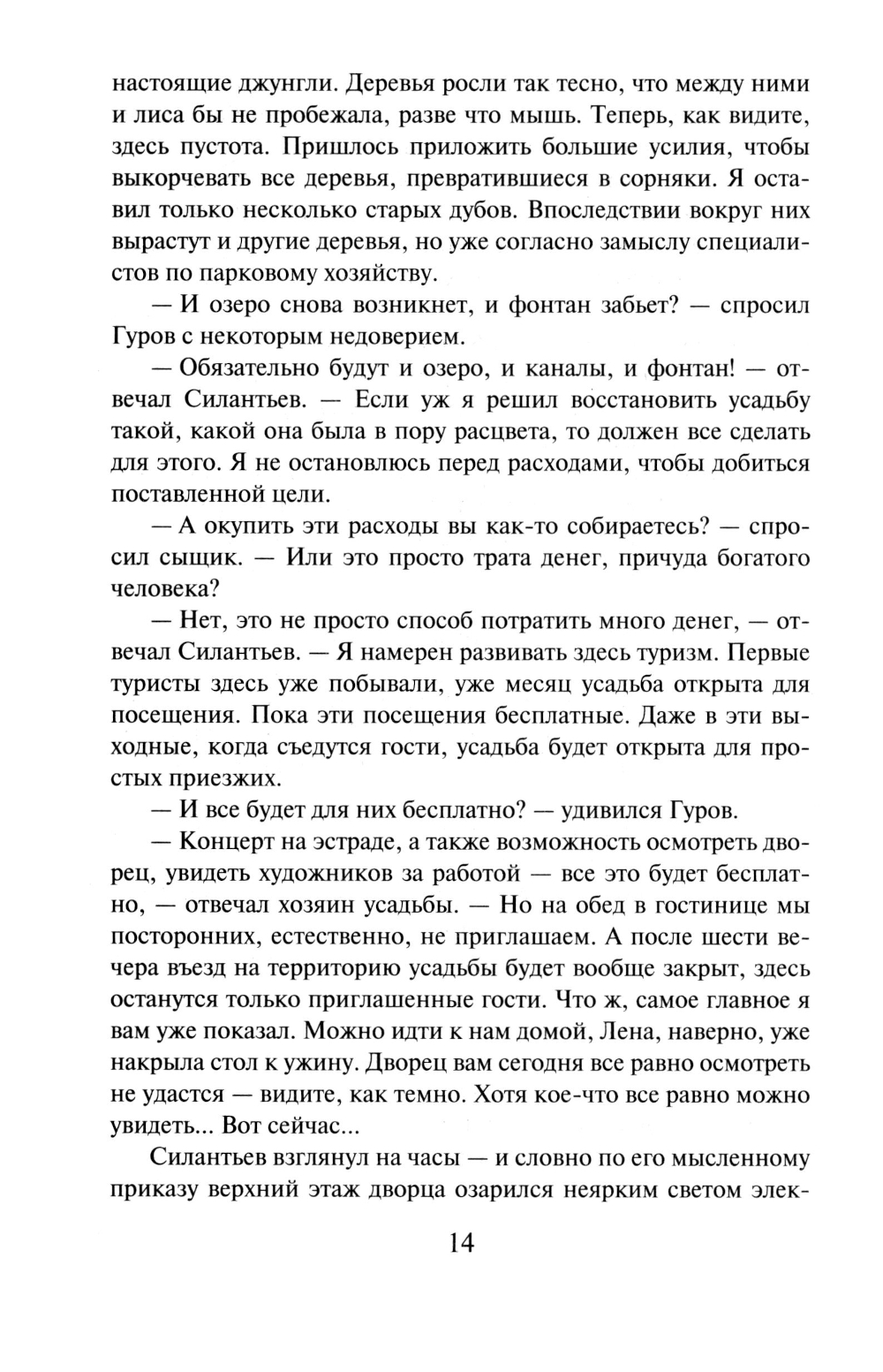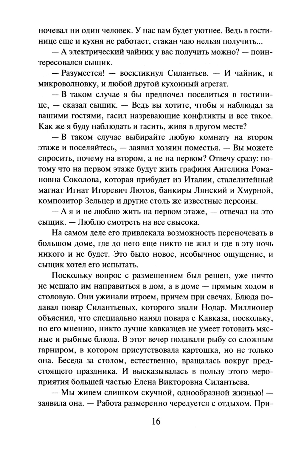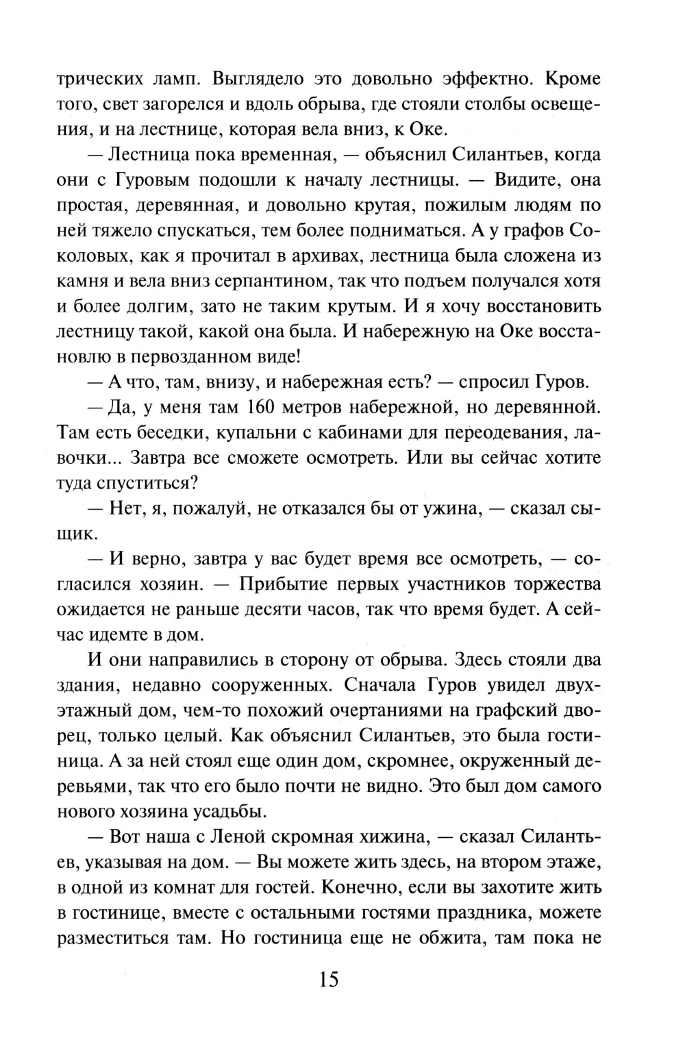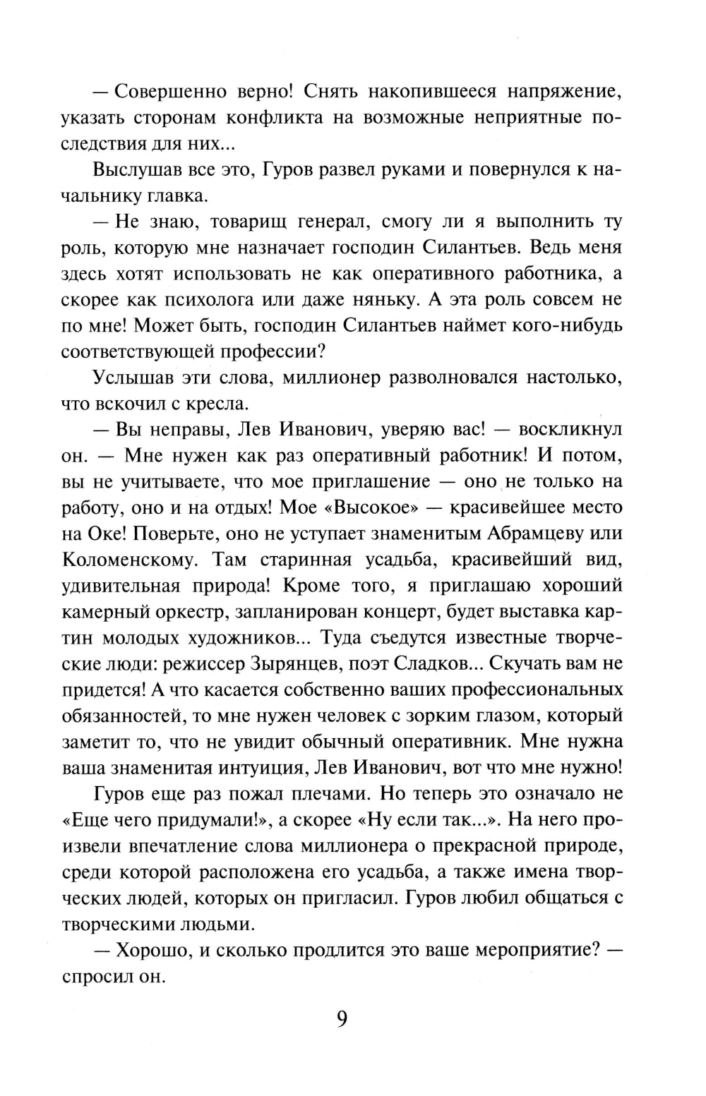 Полковник МВД Лев Гуров получает приглашение на торжественный ужин от известного российского олигарха. Ожидается, что в усадьбу миллионера съедутся крупнейшие бизнесмены, художники и музыканты - весь цвет общества. Вечер обещает быть незабываемым... Неожиданно в разгар праздника одна из дам заявляет, что у нее пропали фамильные драгоценности. Одновременно исчезает сотрудник персонала, обслуживающий банкет. Неужели произошла банальная кража? Гуров начинает расследование и вскоре на берегу реки обнаруживает труп пропавшего слуги. Но драгоценностей при нем нет... Сыщик понимает, что произошло убийство, и это только часть преступного замысла. Что еще придумает злодей, оставаясь на свободе?..| Издательство | Эксмо |
