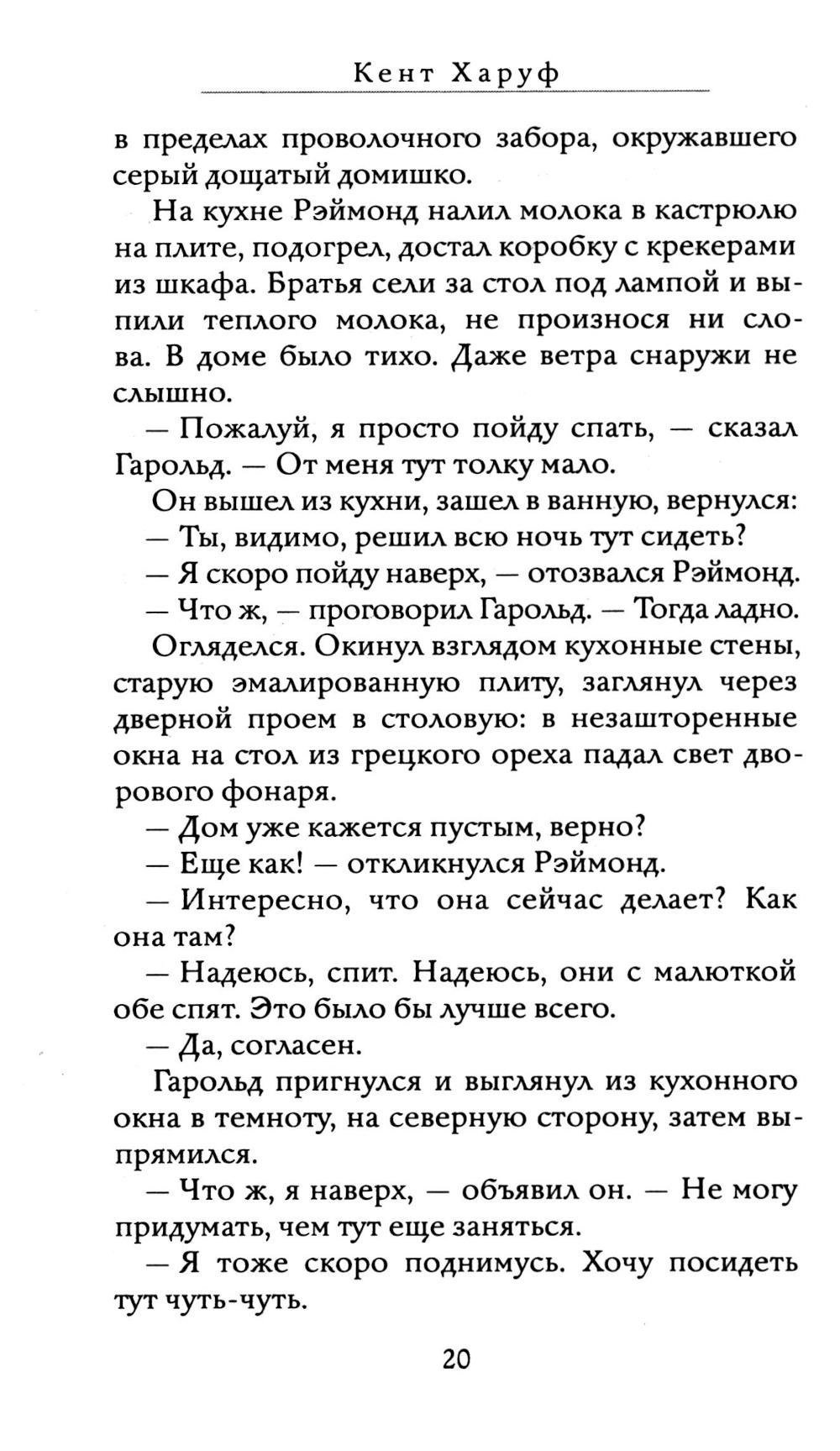 В провинциальном городке Холт, что раскинулся среди бескрайних равнин Колорадо, кипит жизнь. Здесь у каждого жителя своя история: пожилые братья Макфероны скучают по Виктории Рубидо - молодой матери, ставшей для них почти дочерью, а теперь уехавшей учиться, мальчишка в одиночку тянет заботу о старом дедушке, а семейная пара вынуждена защищаться от буйного родственника. Герои этого романа, такие обычные и такие настоящие, напоминают нам, что доброта и жестокость, слабость и сила живут в каждом. А самое главное - что близких людей можно найти даже там, где не ждешь.| Издательство | Дом историй |