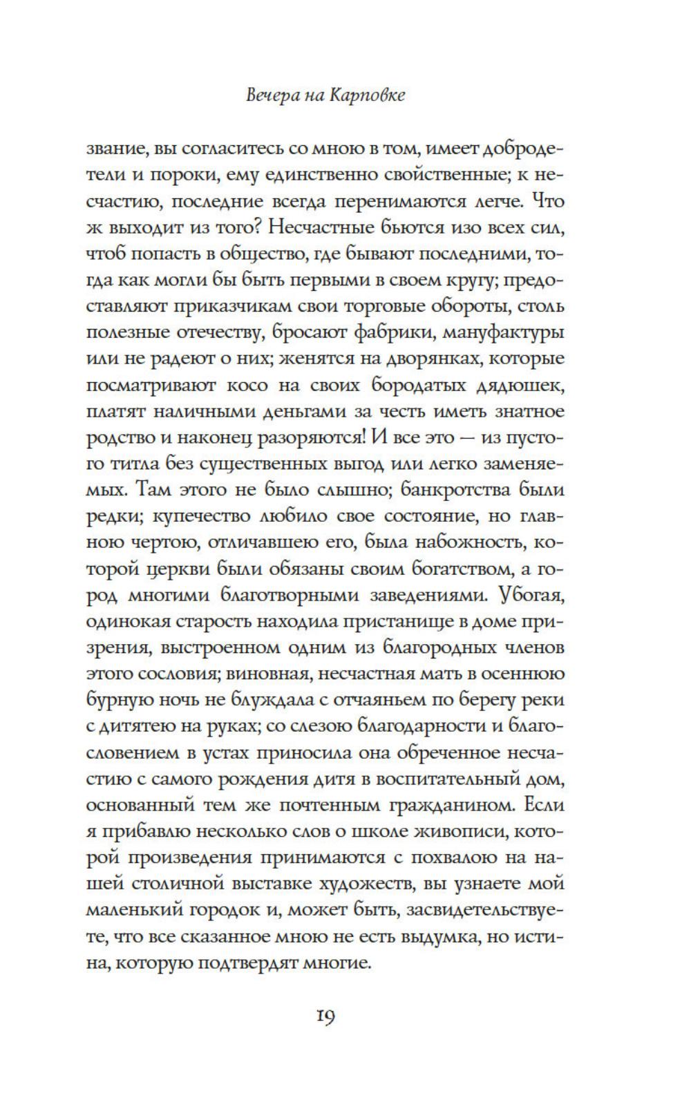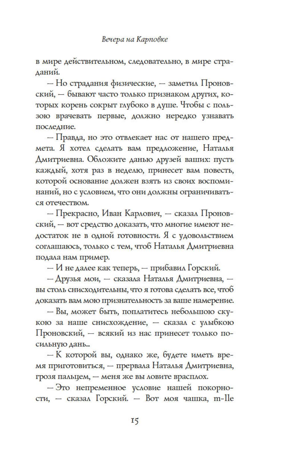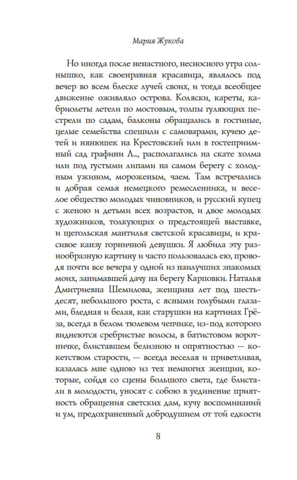 Петербург. Белые ночи. Дачи на реке Карповке. В доме почтенной старушки Натальи Дмитриевны часто собирается небольшой кружок, коротающий дождливые вечера за чтением, музыкой, разговорами. Однажды после спора о литературе они решают сочинить по повести, основанной на своих воспоминаниях, и предоставить эти повести на суд общества. Перед скучающими дачниками проносятся истории о балах и интригах большого света, купеческих семьях, тишине монастырских келий и первой любви в тени цветущей дворянской усадьбы. Но непременно в центре каждой из этих историй - женщина, с ее интересами и мечтаниями, любовью и страхами, запретами и желаниями. Книга «Вечера на Карповке», словно забытая шкатулка с чудными украшениями, окажется прекрасной находкой для мечтательных, но решительных барышень.| Издательство | Азбука |