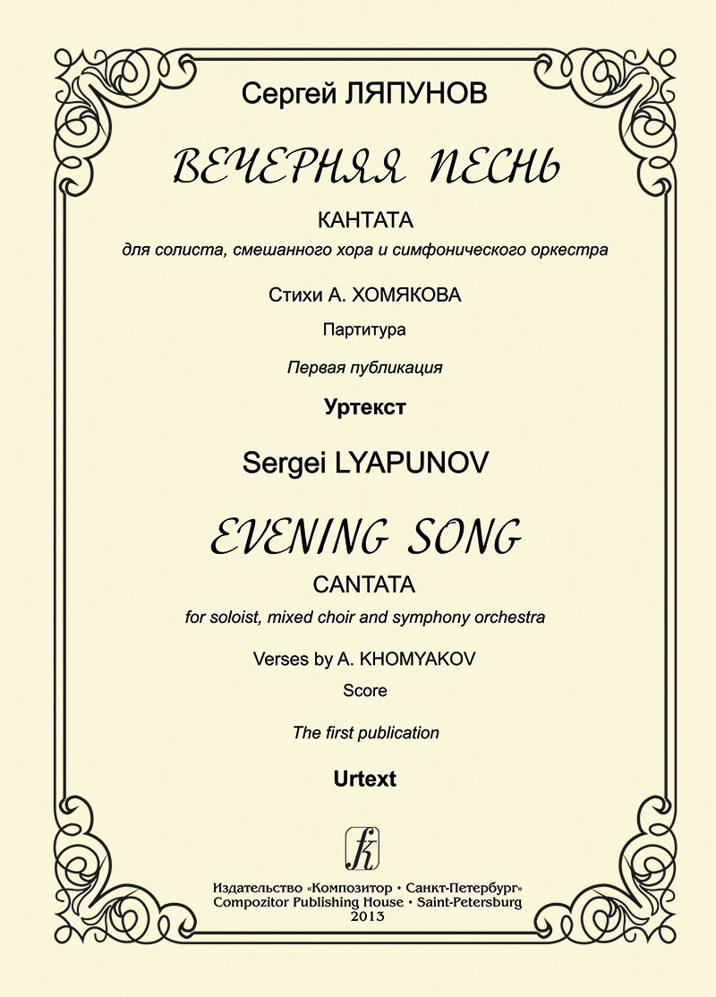 Вечерняя песнь. Кантата для солиста, смеш. хора и симф. оркестра. Стихи А. Хомякова. Партитура. Первая публикация. Уртекст