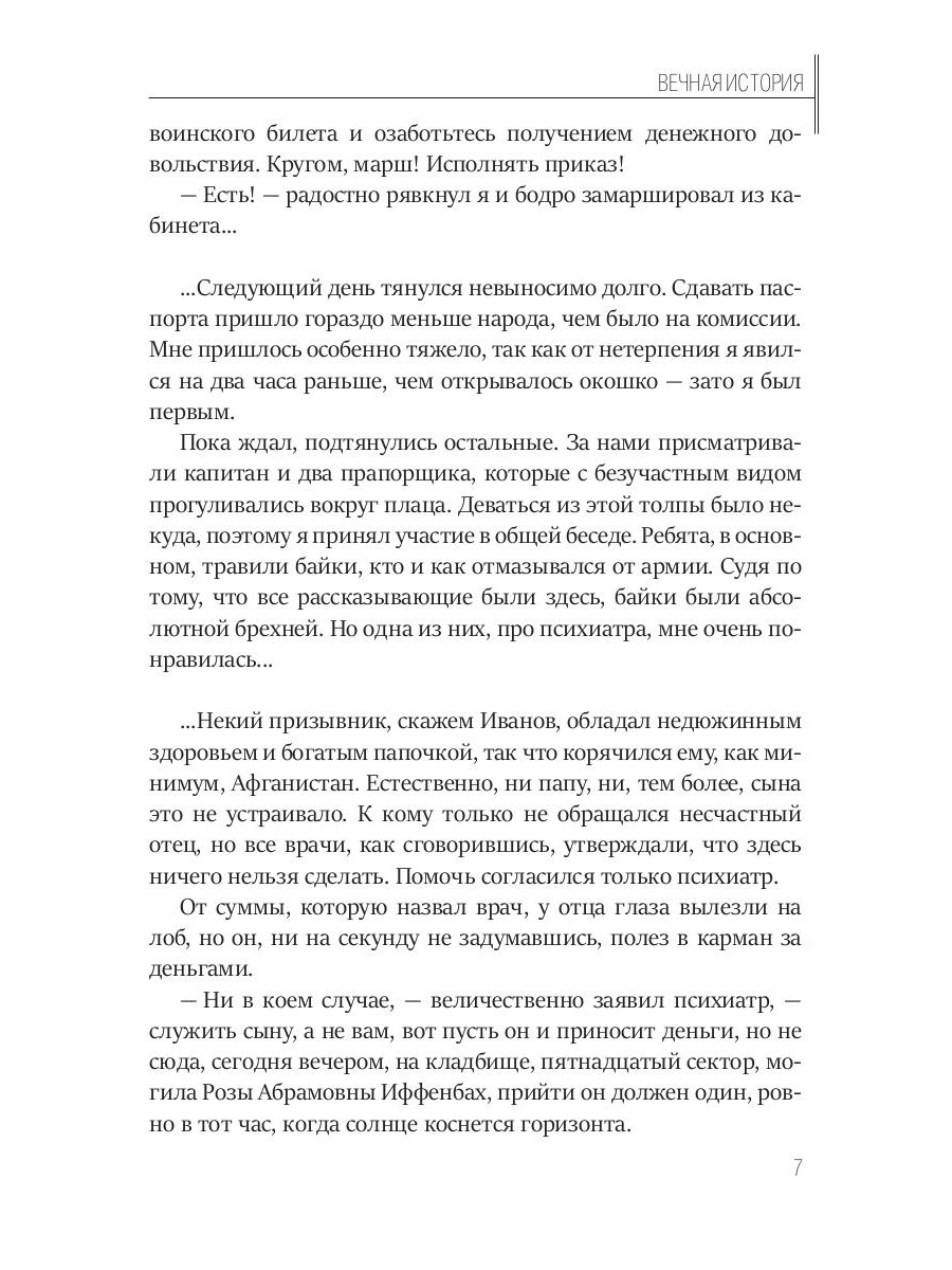 Рубеж конца XX, начала XXI века - страшное время в истории Советского Союза - России. Это время крушения первого в мире социалистического государства, время становления Российской Федерации, время потрясений и разочарований, время торжества звериного капитализма над, может быть, единственно верным прогрессивным путем развития человечества. Беспредел, воровство и неприкрытый грабеж девяностых и двухтысячных унесли массу жизней людей родившихся в конце шестидесятых - начале семидесятых XX века, на них, тогда еще молодых, начинающих жить, обрушился смертельный вал перемен, привнесенный извне. Роман «Вечная история» рассказывает об этом времени с точки зрения фантастического персонажа, который живет среди нас, и он такой не один. Сами себя эти люди называют «вампирами», но они не пьют кровь по ночам, не охотятся за припозднившимися прохожими. Они просто, в меру своих сверхъестественных способностей, пытаются противостоять глупости и жадности тех, кто хочет сделать нашу жизнь кошмаром. Присмотритесь, может быть и вы знаете кого-нибудь из них...| Издательство | Т8 RUGRAM |