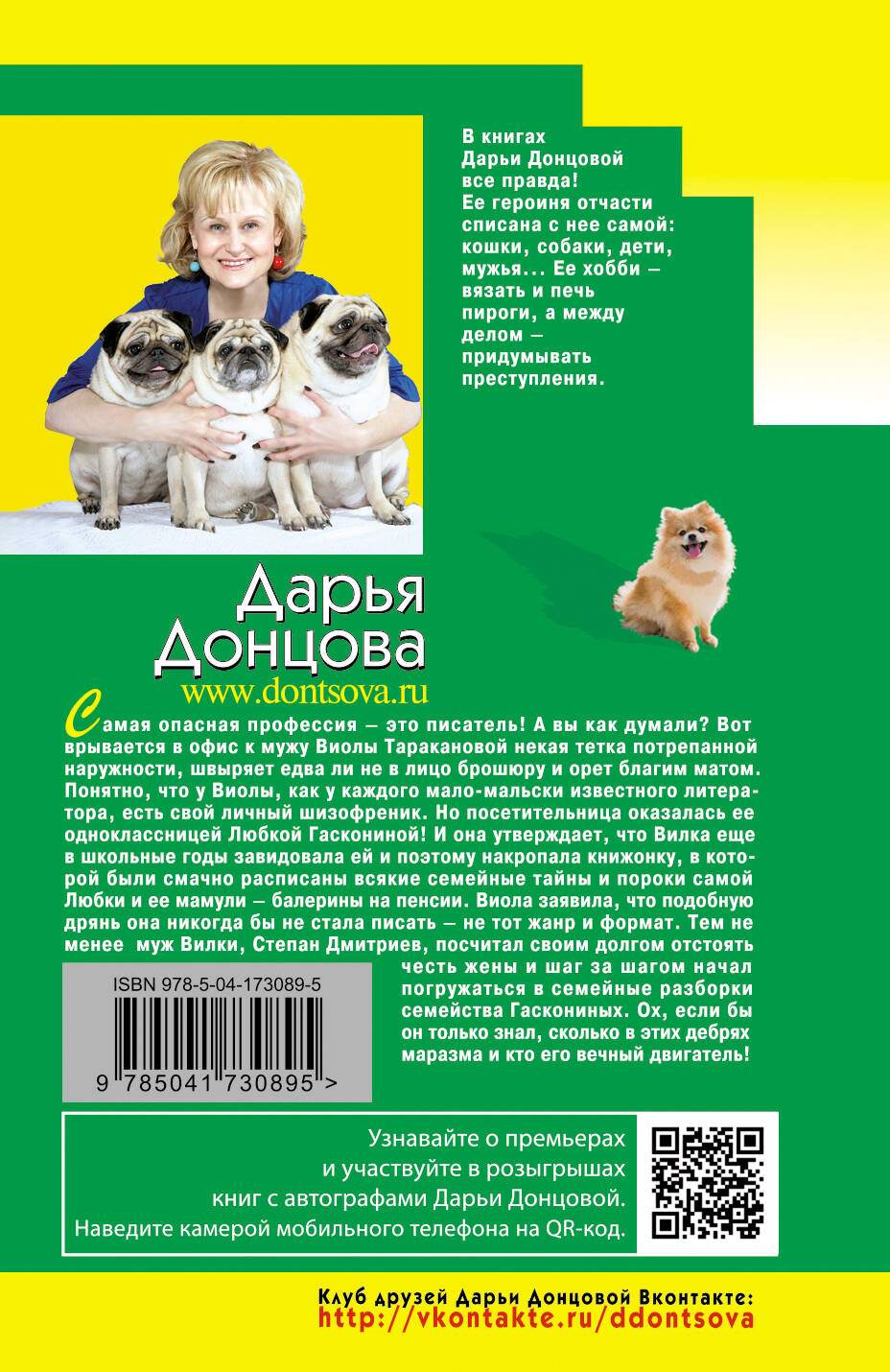 Самая опасная профессия - это писатель! А вы как думали? Вот врывается в офис к мужу Виолы Таракановой некая тетка потрепанной наружности, швыряет едва ли не в лицо брошюру и орет благим матом. Понятно, что у Виолы, как у каждого мало-мальски известного литератора, есть свой личный шизофреник. Но посетительница оказалась ее одноклассницей Любкой Гаскониной! И она утверждает, что Вилка еще в школьные годы завидовала ей и поэтому накропала книжонку, в которой были смачно расписаны всякие семейные тайны и пороки самой Любки и ее мамули - балерины на пенсии. Виола заявила, что подобную дрянь она никогда бы не стала писать - не тот жанр и формат. Тем не менее, муж Вилки, Степан Дмитриев, посчитал своим долгом отстоять честь жены и шаг за шагом начал погружаться в семейные разборки семейства Гаскониных. Ох, если бы он только знал, сколько в этих дебрях маразма и кто его вечный двигатель! Дарья Донцова - самый популярный и востребованный автор в нашей стране, любимица миллионов читателей. В России продано более 200 миллионов экземпляров ее книг. Детективы Дарьи Донцовой написаны в особой манере: помимо интереснейшего сюжета, в них всегда присутствует тонкий юмор, здравый оптимизм и безусловная вера в торжество добра над злом. Это всё, что нужно для отдыха, релаксации и душевного успокоения. Прочтите книги Дарьи, и ваши сердца и души наполнятся светом, оптимизмом, радостью, уверенностью в завтрашнем дне! Они заразят вас желанием жить, радоваться каждому дню и верить в лучшее. -------------------------------------------------- «Донцова невероятная работяга! Я не знаю ни одного другого писателя, который столько работал бы. Я отношусь к ней с уважением, как к образцу писательского трудолюбия. Женщины нуждаются в психологической поддержке и получают ее от Донцовой. Я и сама в свое время прочла несколько романов Донцовой. Ее читают очень разные люди. И очень занятые бизнес-леди, чтобы на время выключить голову, и домохозяйки, у которых есть перерыв 15-20 минут между отвести-забрать детей». - Галина Юзефович, литературный критик «У Дарьи вся детективная закваска всего лишь фон для раскрытия характеров, взаимоотношений между людьми. Всегда есть интрига, и до последнего эпизода непонятно, что, как и почему. В этом смысле условия жанра абсолютно выполняются. Дарья Донцова, конечно, одна из лучших». - Дмитрий Харатьян «Давно начала читать, и так втянулась! И сейчас читаю романы Дарьи. Я отдыхаю за ними. Сама Донцова интеллигентная женщина, у нее мягкий юмор и нестрашный сюжет, все с позитивом и надеждой на хороший конец. Это прекрасно». - Лариса Удовиченко| Издательство | ООО "Издательство "Эксмо" |