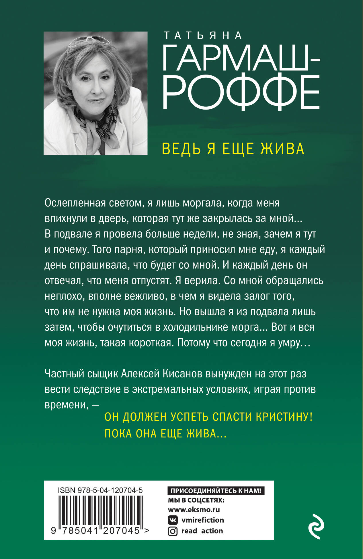 Ослепленная светом, я лишь моргала, когда меня впихнули в дверь, которая тут же закрылась за мной... В подвале я провела больше недели, не зная, зачем я тут и почему. Того парня, который приносил мне еду, я каждый день спрашивала, что будет со мной. И каждый день он отвечал, что меня отпустят. Я верила. Со мной обращались неплохо, вполне вежливо, в чем я видела залог того, что им не нужна моя жизнь. Но вышла я из подвала лишь затем, чтобы очутиться в холодильнике морга... Вот и вся моя жизнь, такая короткая. Потому что сегодня я умру… Частный сыщик Алексей Кисанов вынужден на этот раз вести следствие в экстремальных условиях, играя против времени, - он должен успеть спасти Кристину! Пока она еще жива... Татьяна Гармаш-Роффе отлично знает, каким должен быть настоящий детектив, и следует в своих романах законам жанра. Театральный критик, она умеет выстраивать диалоги и драматургию чувств. Неординарная личность, она дарит часть своей харизмы персонажам. Непредсказуемость сюжетных поворотов, точность в логике и деталях, психологическая достоверность в описании чувств - таково ИСКУССТВО ДЕТЕКТИВА Татьяны Гармаш-Роффе. Главный герой ее романов - частный детектив Алексей Кисанов, или просто Кис. По четырем романам Татьяны Гармаш-Роффе снят телевизионный многосерийный фильм «Любить и ненавидеть».| Издательство | ООО "Издательство "Эксмо" |