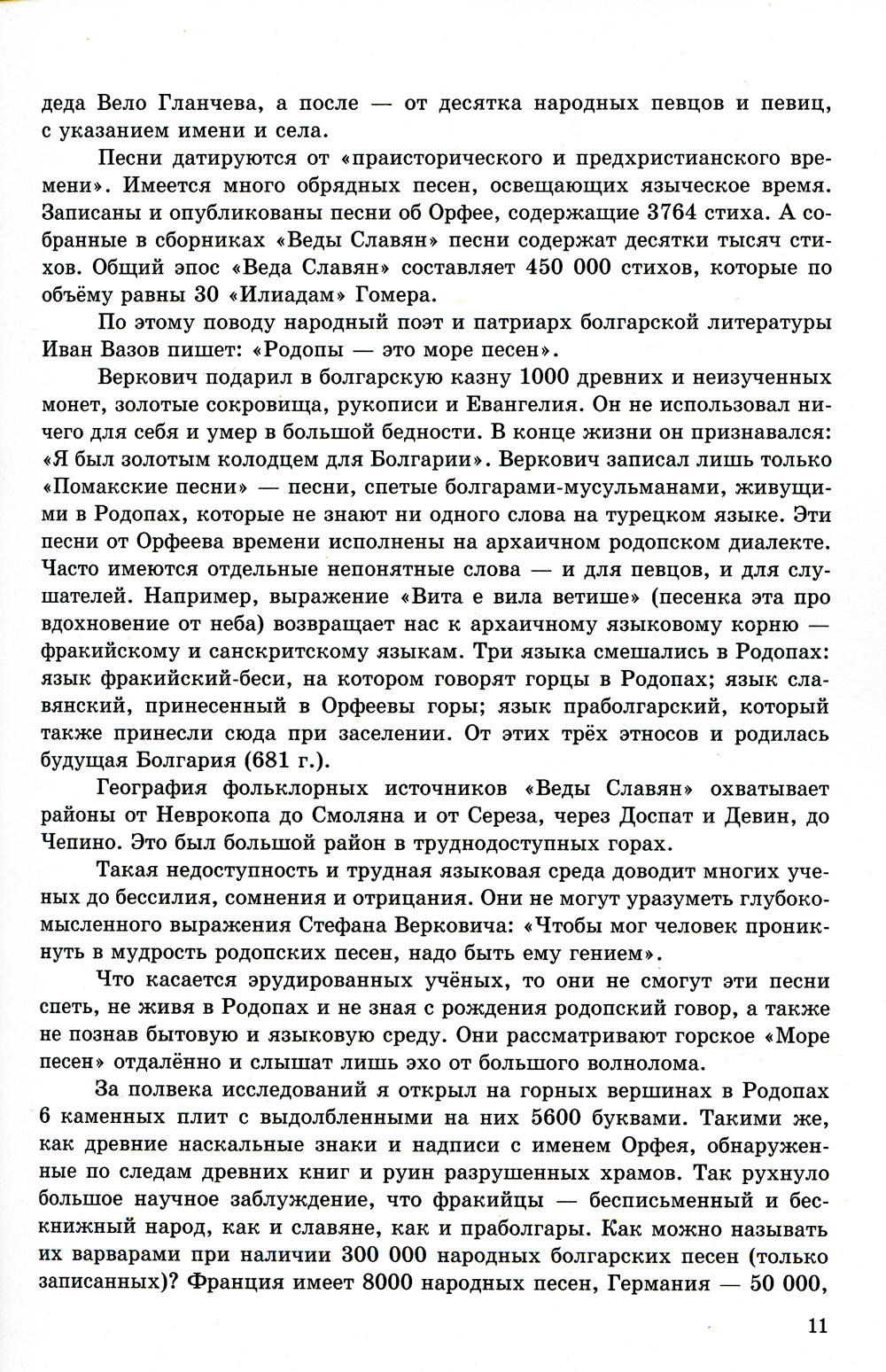 В данной книге приведены эпические песни и предания в Родопских горах у болгарских народов - помаков и марваков. В нее так же включены материалы о переселении праславян в Европу. Песни содержат описание древних обычаев, которые связанны с женитьбой, рождением и воспитанием знаменитых героев. Предания включают в себя множество мистических сцен и заговоров. Имеются песни о гениальном музыканте и певце Орфее - царе и жреце фракийского народа.