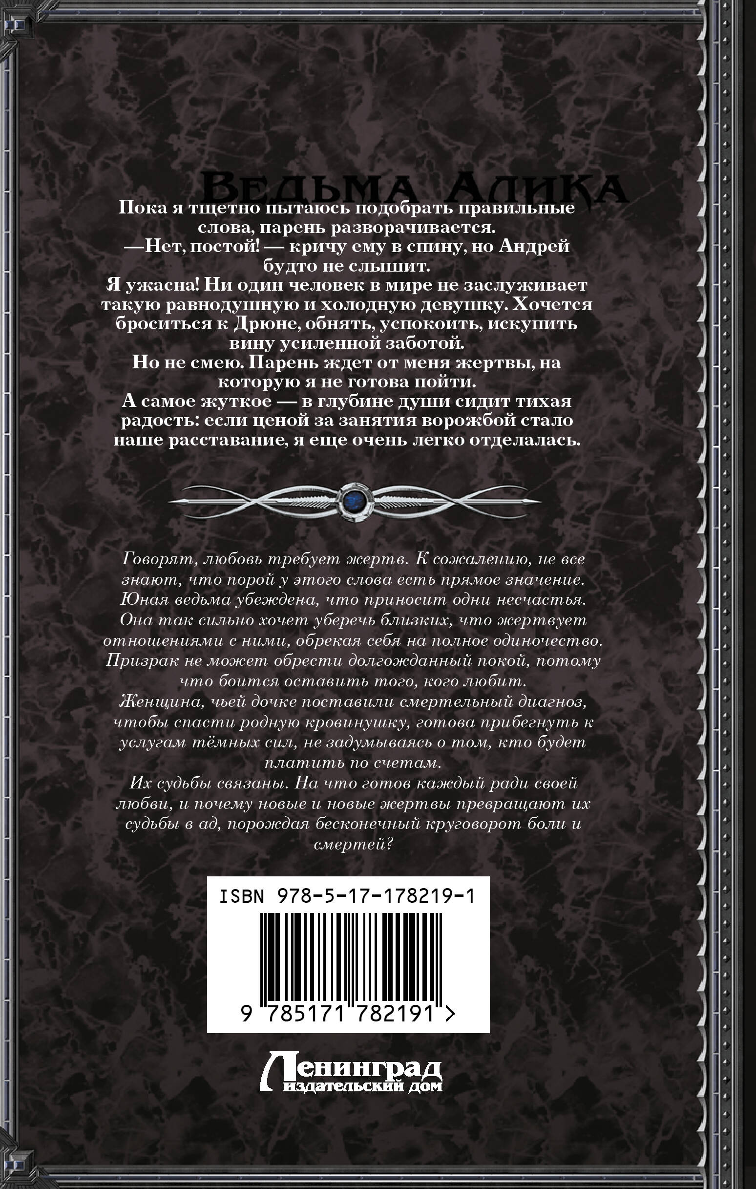 - Лихо закрученный детективный сюжет. Во время написания книгу читали более ста человек, и ни один не смог вычислить «злодея». - В романе вас ждут: тёмный двойник героини, интрига с кражей судьбы и возможность вместе с ведьмой Аликой разбить цепи древнего проклятия. - Леденящая душу атмосфера мистического триллера. - Неоднозначный антагонист, не сопереживать которому невозможно. - Серия «Другие миры» - лучшее фэнтези современных авторов: от юмористического до героического.| Издательство | Издательство "АСТ" |