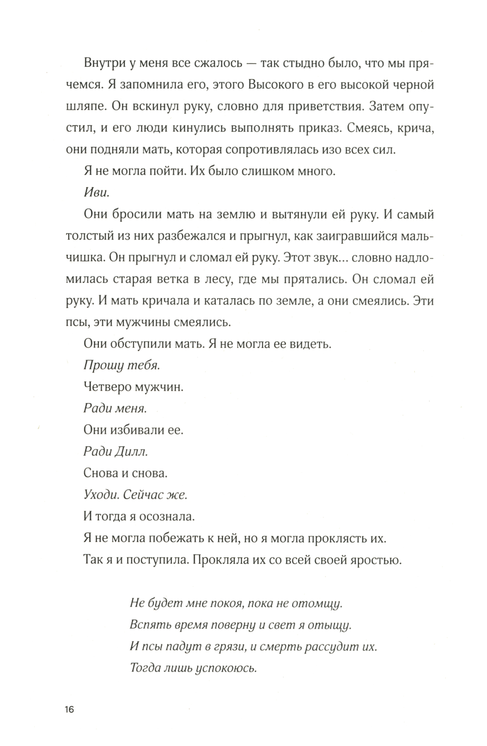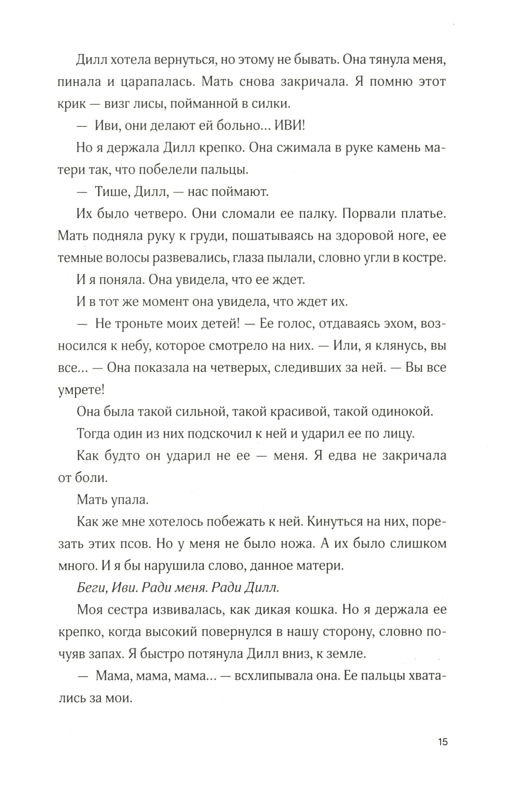 Иви рождена ведьмой, но лишена дара. Она завидует способностям младшей сестры и не может смириться со своим происхождением. Однажды их семью настигают охотники на ведьм и жестоко расправляются с матерью девочек. С того дня гнев и ненависть не покидают Иви, она живет лишь мыслями о мести. В этой безумной борьбе за справедливость ей предстоит узнать правду о своем предназначении.| Издательство | Альпина Паблишер |
