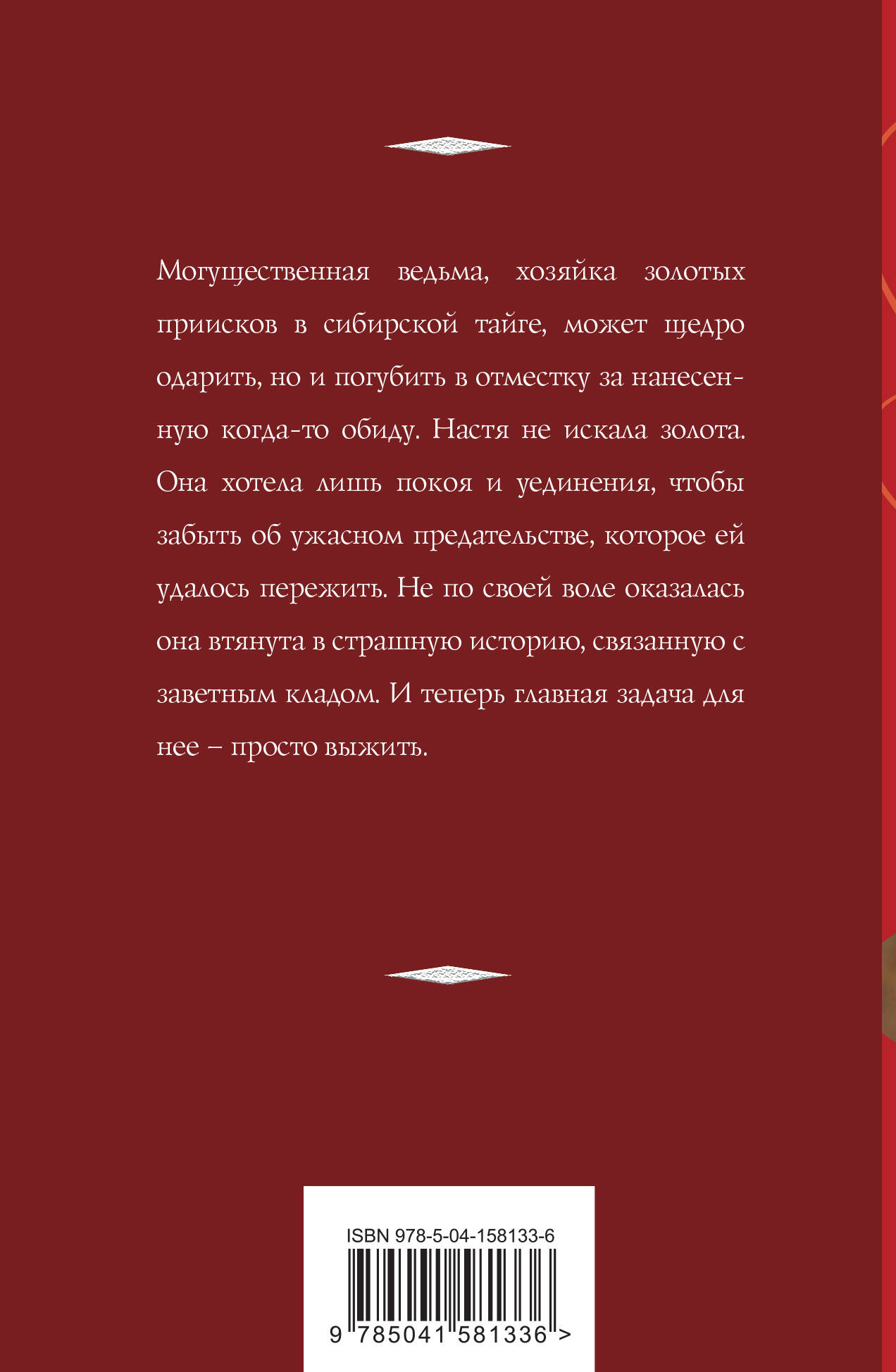 Могущественная ведьма, хозяйка золотых приисков в сибирской тайге, может щедро одарить, но и погубить в отместку за нанесенную когда-то обиду. Настя не искала золота. Она хотела лишь покоя и уединения, чтобы забыть об ужасном предательстве, которое ей удалось пережить. Не по своей воле оказалась она втянута в страшную историю, связанную с заветным кладом. И теперь главная задача для нее - просто выжить. Татьяна Корсакова - популярный автор любовно-авантюрных романов с элементами мистики. Из-под ее пера вышло более двух десятков книг. Сюжеты рождаются из городских легенд, народных сказаний, древних книг и собственной буйной фантазии.| Издательство | ООО "Издательство "Эксмо" |