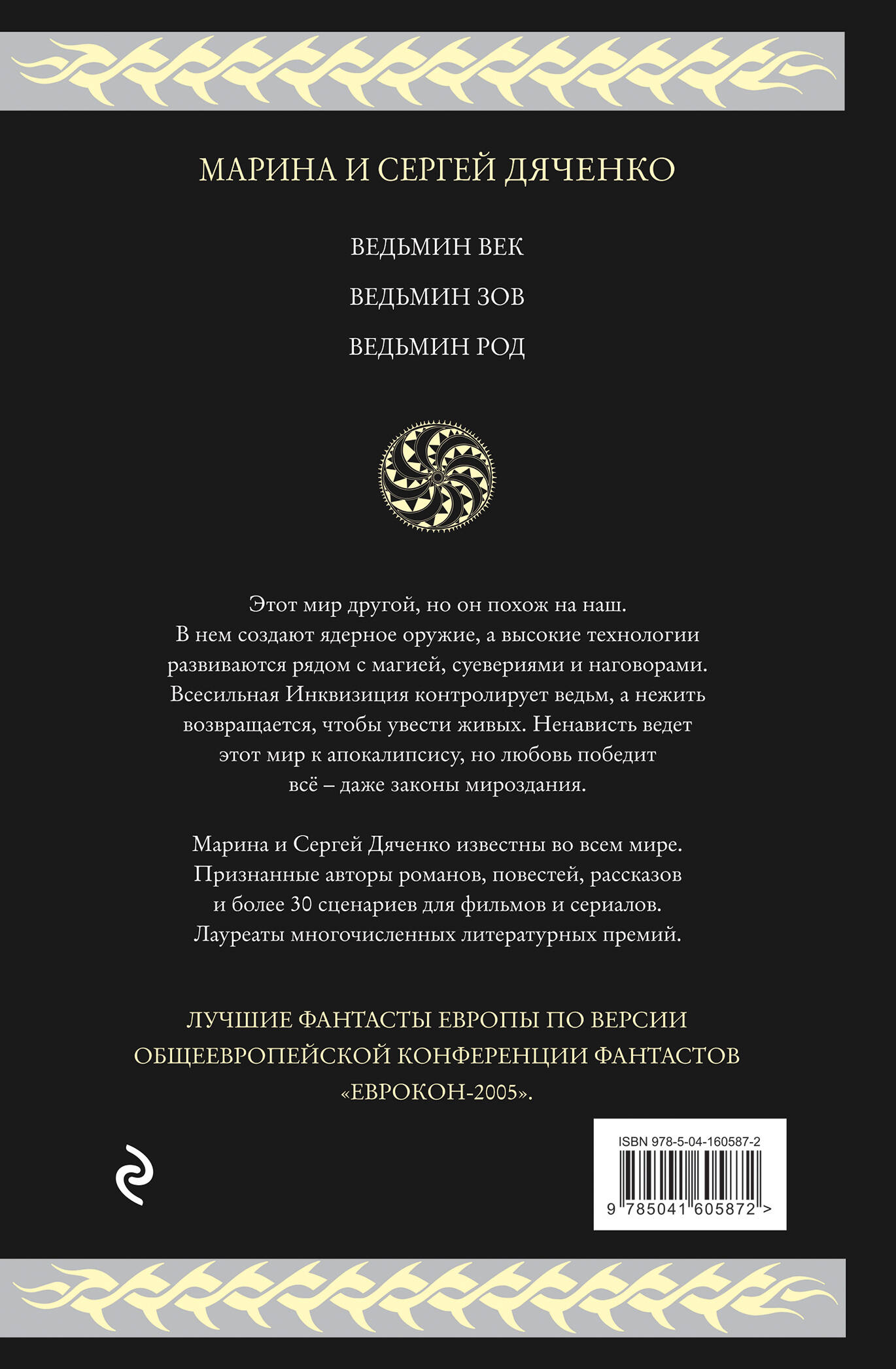 Цикл «Ведьмин век» переведен на английский, немецкий, польский и украинский языки. Он состоит из трех книг: «Ведьмин век» - Премия SFinks, 2004 г. Зарубежный роман года / Зиланткон, 1998 г.Большой Зилант; «Ведьмин зов»; «Ведьмин род». Марина и Сергей Дяченко известны во всем мире. Лучшие фантасты Европы, по версии общеевропейской конференции фантастов «Еврокон-2005». Они написали более 30 романов, сотни повестей и рассказов, и более 30 сценариев для фильмов и сериалов. Лауреатами более 100 премий, отечественных и международных. Создатели многочисленных миров, наполненных настоящими, тонко чувствующими героями, оказавшимися в сложных ситуациях. Психология, метафизика, проблемы общества и много удивительных приключений.| Издательство | ООО "Издательство "Эксмо" |