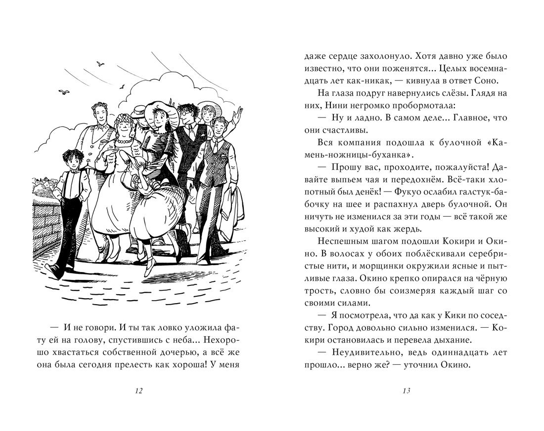 Ведьмочка Кики живет в приморском городе Корико уже много лет. Когда-то, еще совсем юной, она прилетела сюда, чтобы вернуть людям веру в волшебство, как и подобает ведьмам. Здесь она нашла себе дело по душе и организовала службу доставки. Здесь она пережила множество приключений и встретила свою любовь. И вот на исходе уже тринадцатый год, как на свет появились ее близнецы - дочка Нини и сыно Тото. А тринадцатый год - наверное, самый важный в жизни любого ребенка, которому довелось родиться в семье ведьмы. Время принимать решение. Время выбирать из тысячи дорог… Эйко Кадоно написала свои первые рассказы о Кики в 1985 году. Вдохновленная успехом и многочисленными литературными наградами Японии, она продолжила историю юной ведьмочки - на радость поклонникам, среди которых оказался и великий Хаяо Миядзаки, создавший на основе книг Кадоно свой мультипликационный шедевр 1989 года. А в 2014 году вышел и полнометражный художественный фильм. В 2018 году Эйко Кадоно получила премию Ханса Кристиана Андерсена как лучший детский писатель. ВПЕРВЫЕ НА РУССКОМ ЯЗЫКЕ!