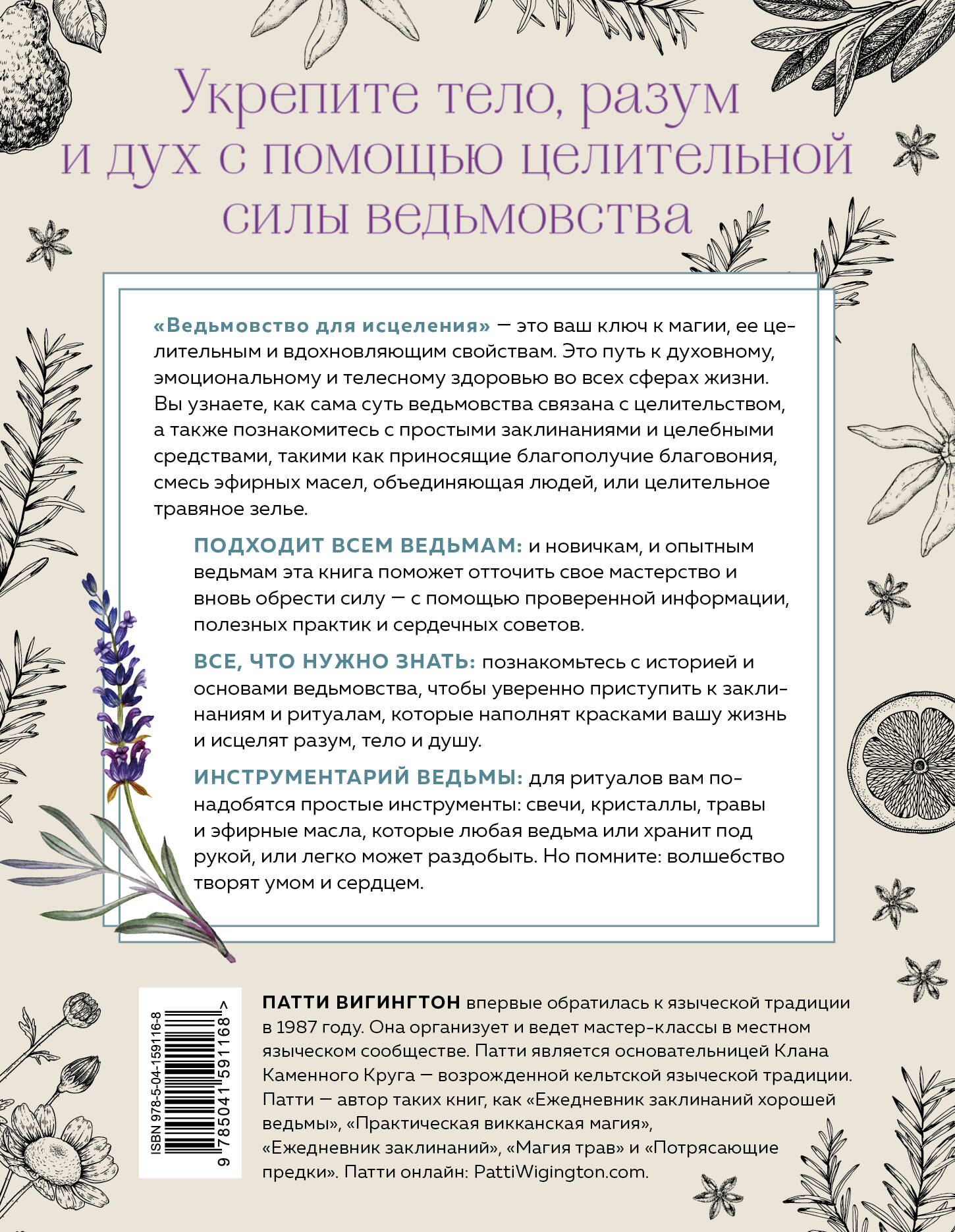 Укрепите тело, разум и дух с помощью целительной силы ведьмовства. «Ведьмовство для исцеления» опытной ведьмы Патти Вигингтон - ваш ключ к магии, ее исцеляющим и вдохновляющим свойствам. Это путь к духовному, эмоциональному и телесному здоровью во всех сферах жизни. Вы узнаете, как сама суть ведьмовства связана с целительством, а также познакомитесь с простыми заклинаниями и целебными средствами, такими, как приносящие благополучие благовония, смесь эфирных масел, объединяющая людей, или целительное травяное зелье. • И новичкам, и опытным ведьмам эта книга поможет отточить свое мастерство и вновь обрести силу - с помощью проверенной информации, полезных практик и сердечных советов. • Эта книга познакомит вас с историей и основами ведьмовства и даст возможность приступить к заклинаниям и ритуалам, которые наполнят красками вашу жизнь и исцелят разум, тело и душу. • В этой книге вы найдете перечень и описание инструментов и ингредиентов, которые сделают вашу практику более эффективной: свечи, кристаллы, травы и эфирные масла, который любая ведьма или хранит под рукой, или легко может раздобыть. Но помните: волшебство творят умом и сердцем. ПАТТИ ВИГИНГТОН впервые обратилась к языческой традиции в 1987 году. Она организует и ведет мастер-классы в местном языческом сообществе. Патти - основательница Клана Каменного Круга - возрожденной кельтской языческой традиции. Патти является автором таких книг, как «Ежедневник заклинаний хорошей ведьмы», «Практическая викканская магия», «Ежедневник заклинаний», «Магия трав» и «Потрясающие предки». Патти онлайн: PattiWigington.com| Издательство | Эксмо |