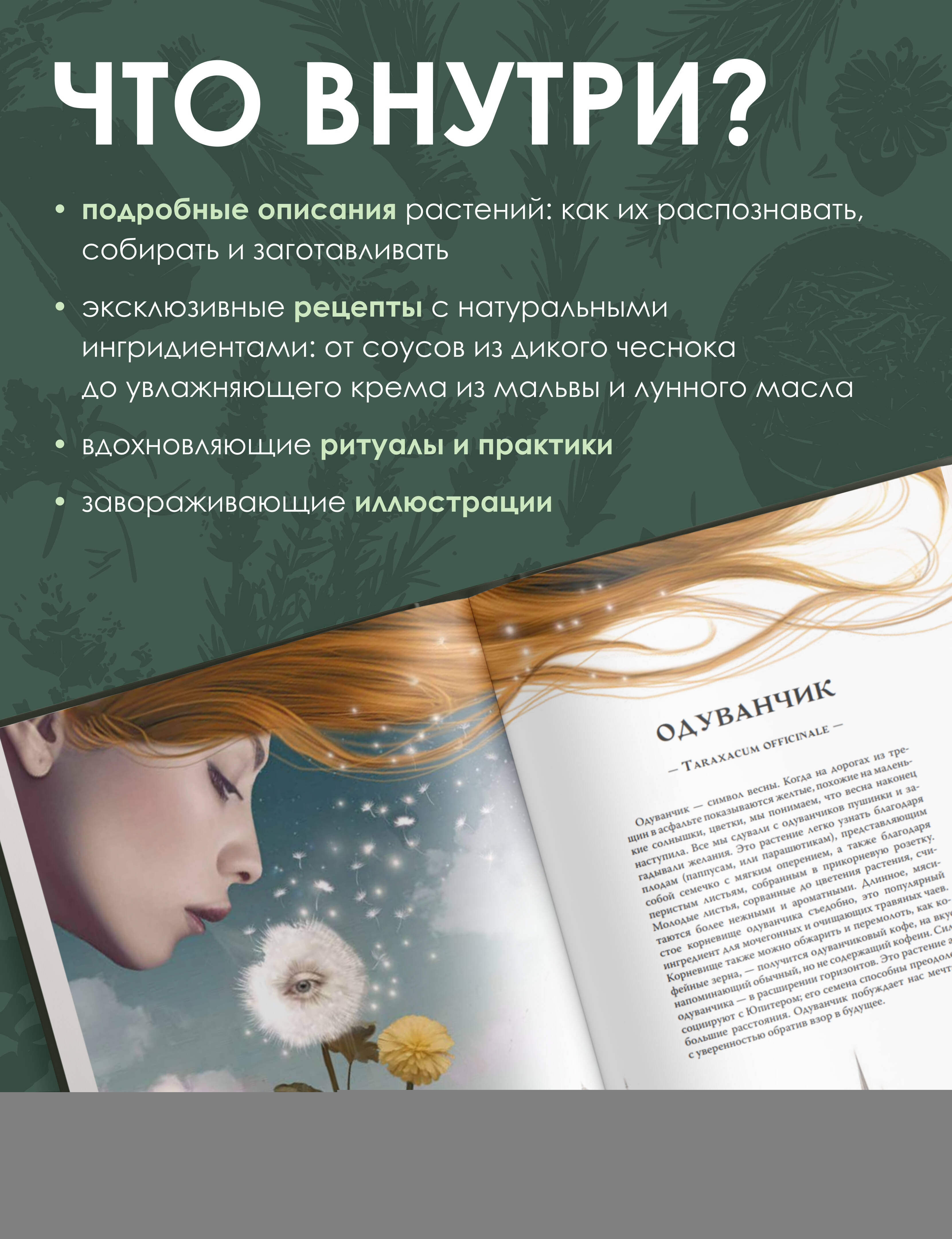 Эта книга с великолепными метафоричными иллюстрациями открывает дверь в загадочный мир растений, тесно связанный с древними традициями ведьм. Автор умело погружает читателя в атмосферу колдовоства и мистических знаний, раскрывает лечебные и магические свойства трав, растущих на окраинах городов, вдоль железных дорог, на полях и у даже морского побережья. Каждая глава переносит в новое место, а обитающая там ведьма делится секретами: как собирать и заготавливать травы, варить зелья, создавать натуральные косметические средства и придумывать кулинарные рецепты, чтобы раскрыть всю силу природы. Узнайте секреты, которые так бережно хранят древние ведьмы...
