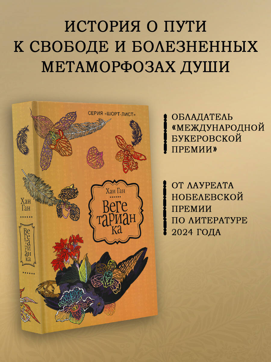 Роман-лауреат «Международной Букеровской премии». Волнующая история о власти, предательстве, жестокости, красоте, творчестве и обретении свободы. Роман «Вегетарианка» южнокорейской писательницы Хан Ган в 2016 году получил Международную Букеровскую премию, обойдя произведения таких корифеев, как лауреат Нобелевской премии по литературе Орхан Памук и итальянка Элена Ферранте. Журналы The Economist, The New York Times, Elle, Time, Wall Street Journal признали «Вегетарианку» одной из лучших книг года. Хан Ган удалось не просто показать бунт маленького человека против современного общества с его устаревшими принципами, предрассудками и фальшивой системой ценностей, но и сделать это лаконично, доходчиво и прежде всего оригинально. Этот яркий, многозначный, наполненный символами и аллюзиями роман заставит читателя вновь и вновь задаваться вопросом, где проходит грань между свободой и рабством, безумием и поиском себя, фантазией и реальностью. Серия «Шорт-лист» продолжает знакомить читателей с главными современными романами, заслужившими престижные премии и ставшими громким событием в литературном мире.