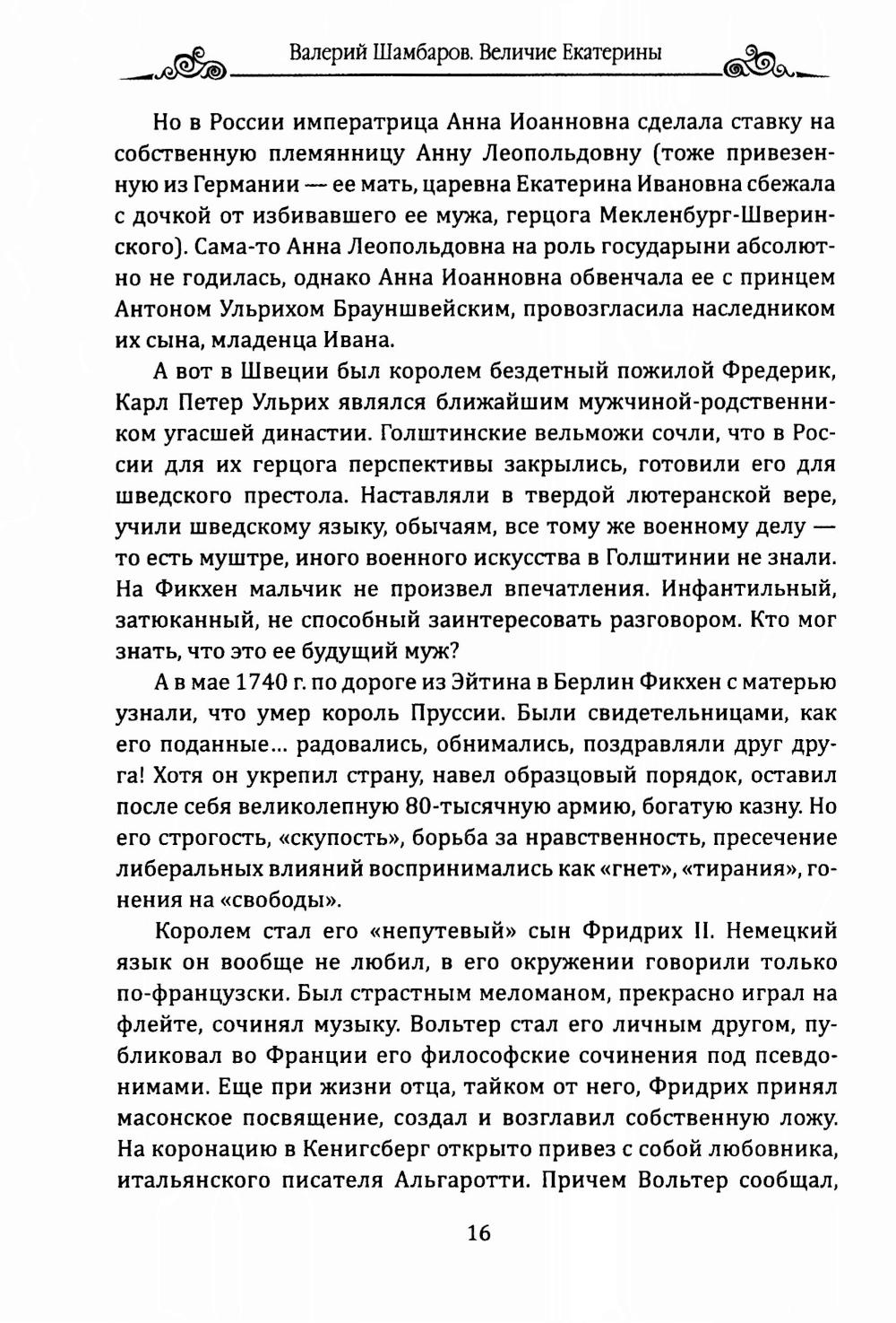 Екатерине II никогда официально не присваивали титул Великая, но она стала таковой в истории и памяти народа своими делами. В политических бурях спасла Самодержавие и Православие, под ее властью Россия достигла такого могущества, что смогла противостоять половине Европы, побеждать сразу на нескольких фронтах. Присоединила берега Черного и Азовского морей, Крым, Кубань, Правобережную Украину, Белоруссию, Литву. Императрица создала в стране новые эффективные механизмы администрации, системы образования, здравоохранения. Но и клеветой Екатерину залили очень густо - впрочем, как и всех других правителей, много сделавших для возвышения России. Об этой яркой и неординарной личности, ее свершениях рассказывает новая книга известного писателя-историка Валерия Шамбарова «Величие Екатерины. Новороссия, Крым, разделы Польши».| Издательство | Родина |