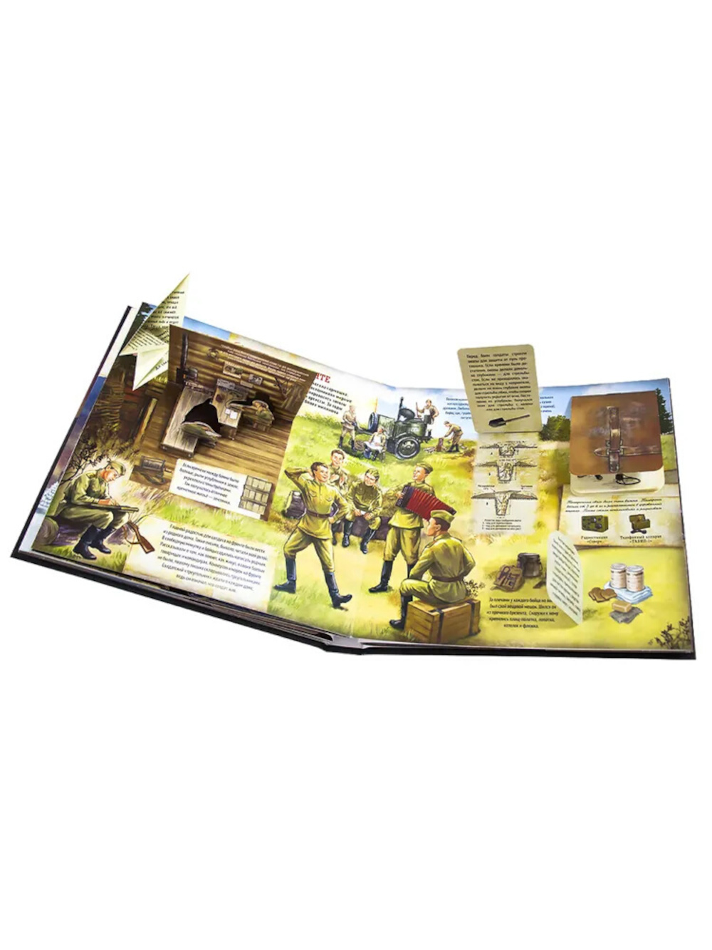 Уникальная интерактивная энциклопедия, посвященная великой отечественной войне. История оживет благодаря объемным pop-up конструкциям и реалистичным иллюстрациям техники и вооружения на каждом развороте. Открывай окошки, изучай карты сражений, читай дополнительные брошюры и карточки. Погрузись в мир исторических событий вместе с интерактивной энциклопедией «Великая Отечественная война».| Издательство | Аль Пако |