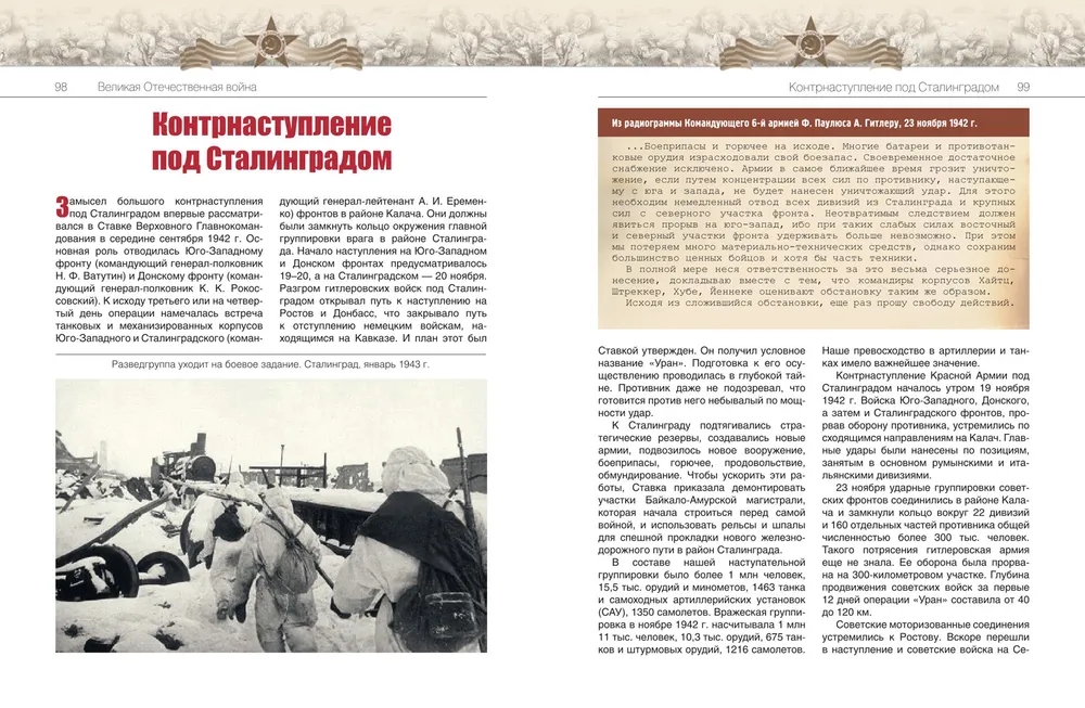 Можно ли уместить на 200 страницах все события 1418 дней Великой Отечественной - сотни сражений, подвиги миллионов людей, судьбы тысяч и тысяч героев - от простых солдат, партизан, героев тыла до знаменитых военачальников? И более того - все самое ценное из сотен и сотен книг, посвященных Войне и Победе? Создателям этой книги удалось почти невозможное: обработав десятки тысяч страниц документов, воспоминаний, исторических трудов, они создали одновременно емкую, насыщенную, но и увлекательную работу, в которой собрано все самое важное о подвиге нашего народа в Великой Отечественной войне. От статистики и цитат из архивных документов, в том числе - недавно рассекреченных приказов и договоров, сводок, аналитических записок - до наполненных эмоциями писем и записей участников сражений и газетных статей. Авторы книги - выдающийся российский ученый, военный историк профессор О. А. Ржешевский (1924-2019), Ю. А. Никифоров и Н. Н. Глухарев. Книга создана при участии Российского военно-исторического общества.| Издательство | Просвещение-Союз |