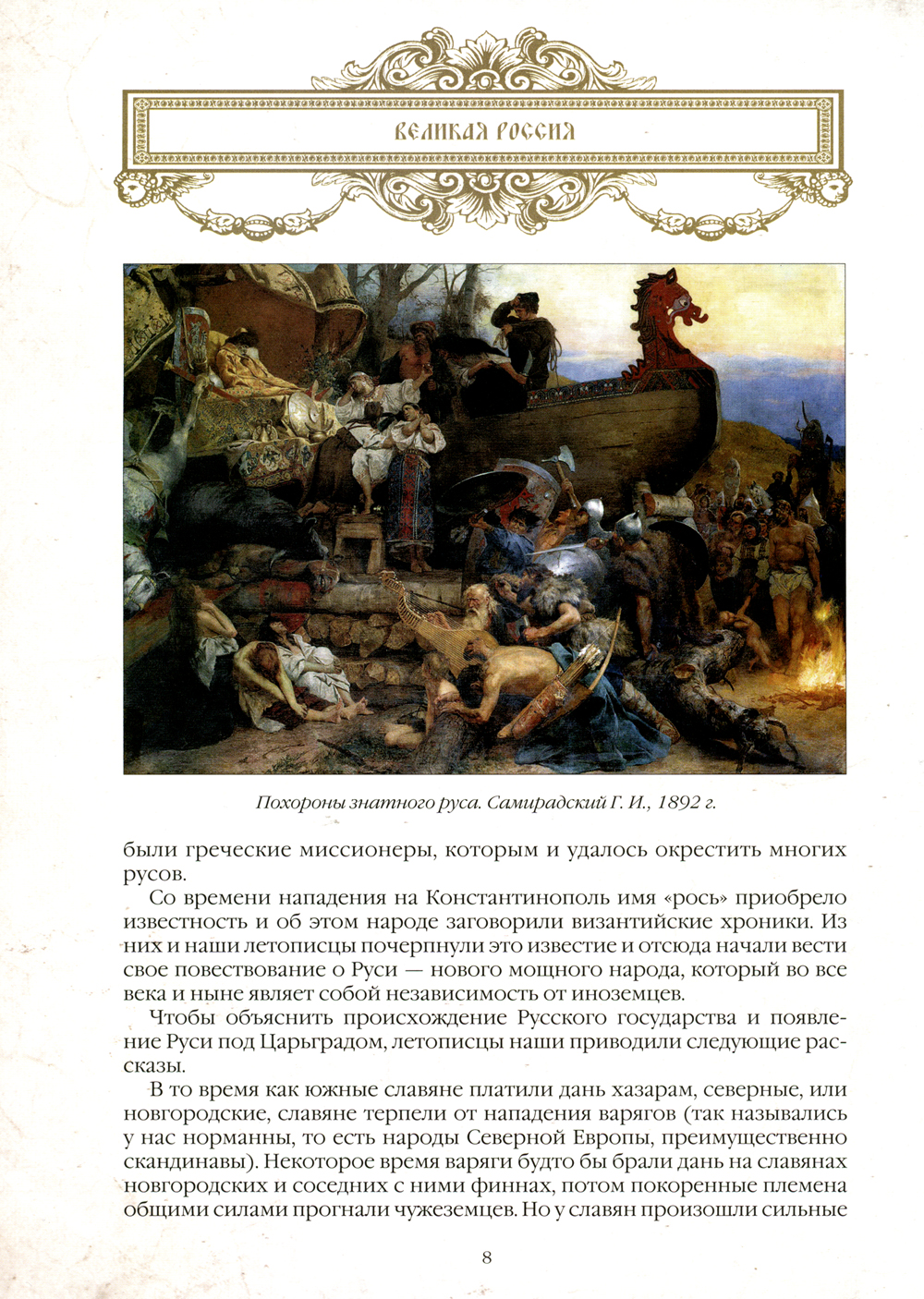 Главная книга о тысячелетней истории России - от легендарного призвания основателя первой правящей династии Рюрика до великой Российской империи начала XX века! «Великая Россия» - квинтэссенция труда величайших русских историков за 300 лет: впервые в одной книге сведены и согласованы между собой данные всех главных книг по истории России - от легендарной «Русской истории» Михаила Ломоносова, работ Карамзина, Ключевского, Костомарова и Соловьева до трудов их продолжателей Дмитрия Иловайского и Сергея Платонова. Увлекательное повествование охватывает главнейшие этапы развития государства, важнейшие события, судьбы исторических деятелей и правителей российской державы, олицетворяющих своими трудами, подвигами и именами наше государство. Книга красочно иллюстрирована произведениями классической живописи.| Издательство | Просвещение-Союз |