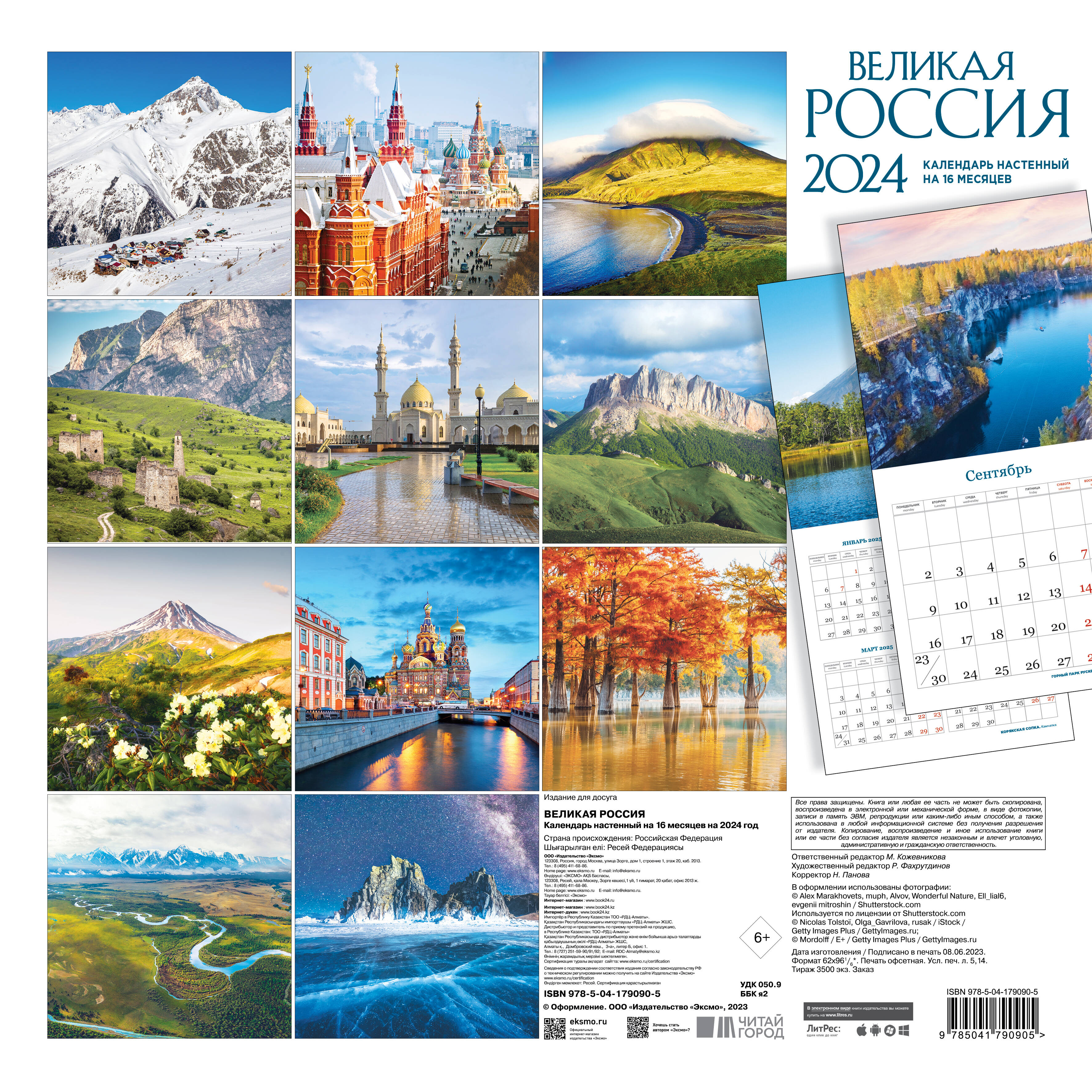 Великая Россия. Календарь настенный на 16 месяцев на 2024 год (300х300 мм)