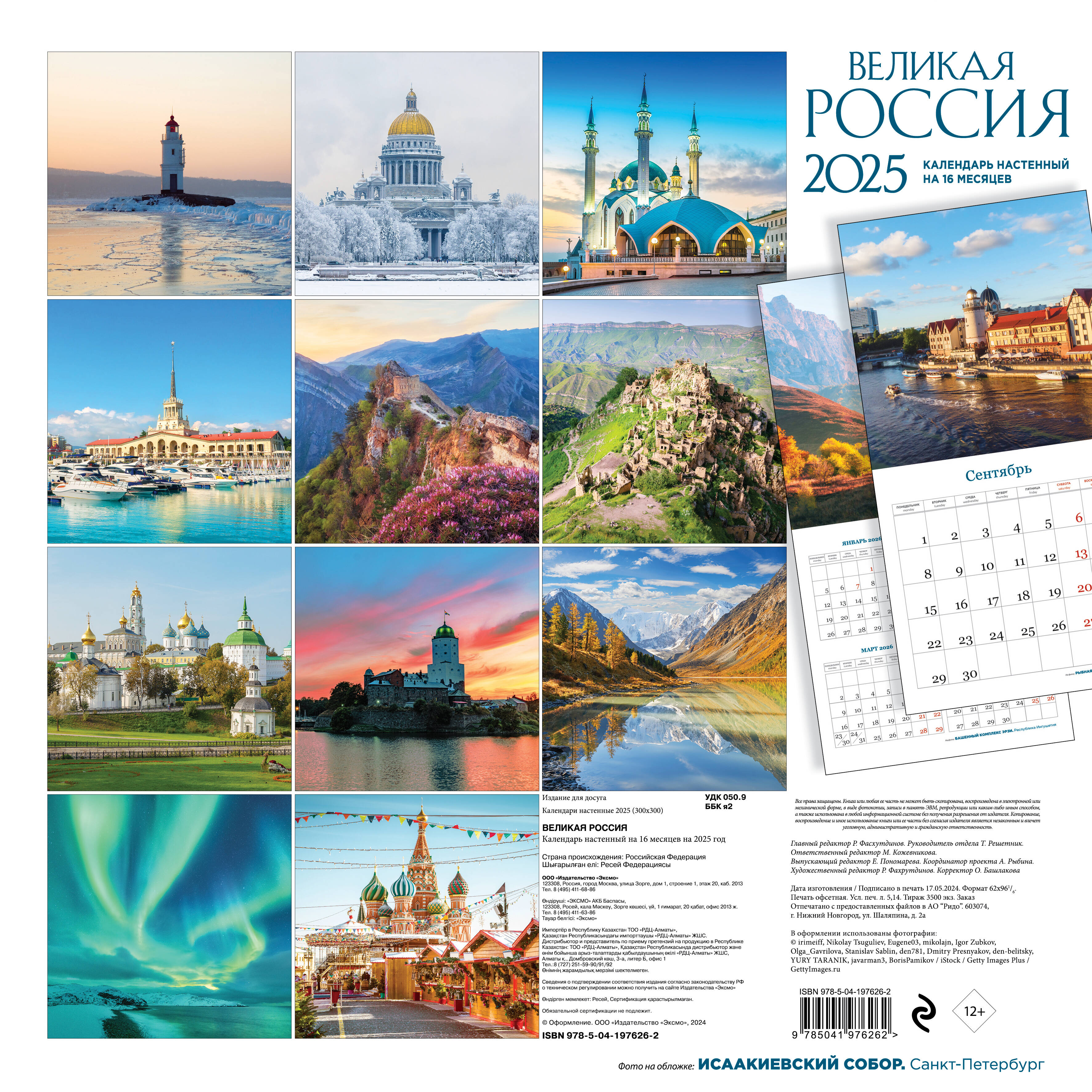 Великая Россия. Календарь настенный на 16 месяцев на 2025 год (300х300 мм)