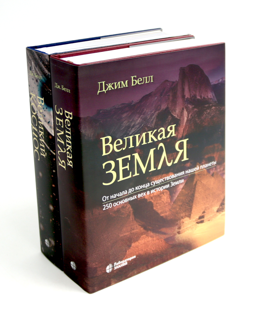 Комплект содержит книги: «Великая Земля» История Земли охватывает самые разные сферы - физику, химию, биологию, астрономию, астробиологию, геологию, минералогию, планетологию, «науки о жизни», государственную политику, науки об атмосфере, климатологию, инженерное дело и множество других научных и социальных дисциплин. Автор книги попытался выявить знаковые события и открытия, которые затрагивают все эти области, и тем самым дать хоть какое-то представление о той широте опыта и квалификации, которые требуются для того, чтобы понять, как наш мир стал таким, каким мы его знаем, и что случится с ним в будущем. В книге также рассказывается об ученых, исследователях, изобретателях и других энтузиастах, избравших своим делом жизни изучение нашей планеты и внесших значительный вклад в события и открытия, которые упоминаются на страницах книги. Для всех интересующихся историей Земли и ее будущим. «Великий космос» В книге вы найдете ответы на важнейшие вопросы современной науки: как зародилась Вселенная? Как рождаются звезды и галактики? Есть ли планеты, подобные Земле? Одиноки ли мы в этом мире? Автор представляет читателю 250 основных вех в истории астрономии. Все статьи сопровождаются яркими, красочными иллюстрациями. Для всех интересующихся астрономией.| Издательство | Лаборатория знаний |