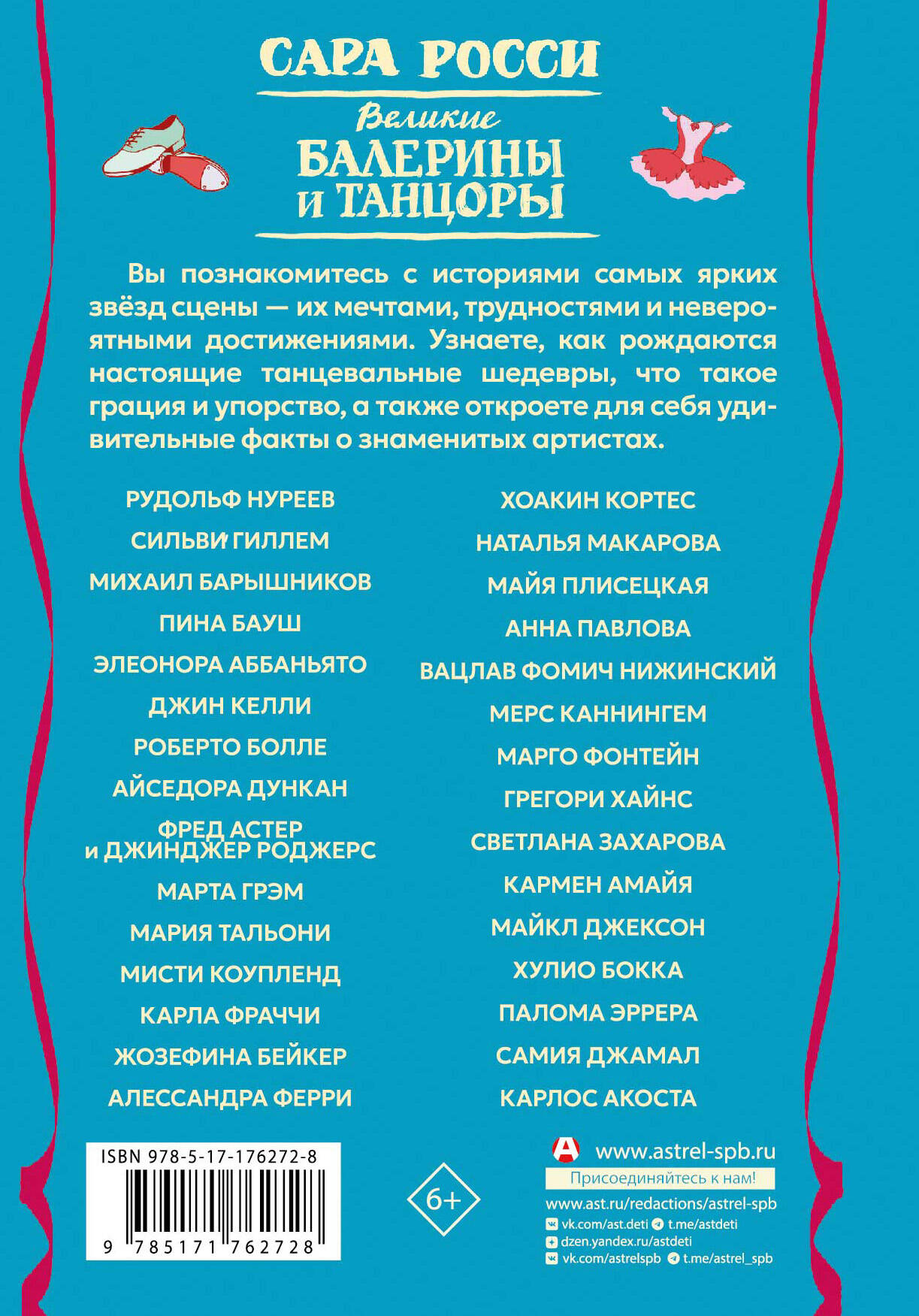 Откройте для себя увлекательные биографии великих балерин и танцоров: от гениального Рудольфа Нуреева и талантливого Михаила Барышникова до неподражаемой Майи Плисецкой, загадочной Айседоры Дункан, безупречных Фреда Астера и Джинджер Роджерс, харизматичных Жозефины Бейкер, Джина Келли, Хоакина Кортеса и Майкла Джексона. Вас ждут истории о судьбах, мечтах, трудностях и невероятных победах величайших звёзд сцены. Вы узнаете, как создаются шедевры танцевального искусства, погрузитесь в мир истинной грации, упорства и вдохновения, а также откроете для себя малоизвестные факты о кумирах миллионов.| Издательство | Издательство "АСТ" |