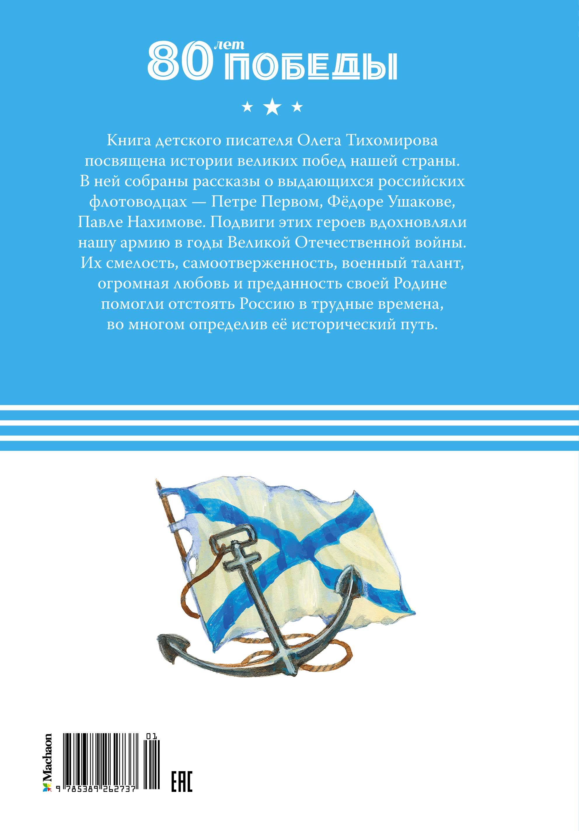 Книга детского писателя Олега Тихомирова посвящена истории великих побед нашей страны. В ней собраны рассказы о выдающихся российских флотоводцах - Петре Первом, Фёдоре Ушакове, Павле Нахимове. Подвиги этих героев вдохновляли нашу армию в годы Великой Отечественной войны. Их смелость, самоотверженность, военный талант, огромная любовь и преданность своей Родине помогли отстоять Россию в трудные времена, во многом определив её исторический путь.| Издательство | Азбука-Аттикус Издат.группа ООО |