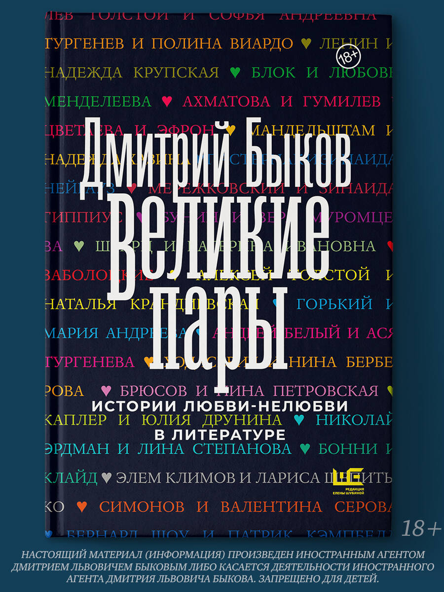 Сборник ярких историй любви и нелюбви в русской и мировой литературе. В книгу вошли легендарные лекции Дмитрия Быкова, созданные специально для лектория «Прямая речь», а также статьи, написанные для Story. Неординарный взгляд на истории выдающихся пар. Ленин и Крупская как модернисты в русской литературе; Иван Сергеевич Тургенев находится в сердце ада - и счастлив этим; Анна Ахматова и дурные знаки. Дмитрий Быков (признан Минюст РФ иноагентом) - поэт, прозаик, публицист. Обладатель множества престижных литературных премий, в том числе неоднократно - «Большая книга» и «Национальный бестселлер».| Издательство | ИЗДАТЕЛЬСТВО "АСТ" |