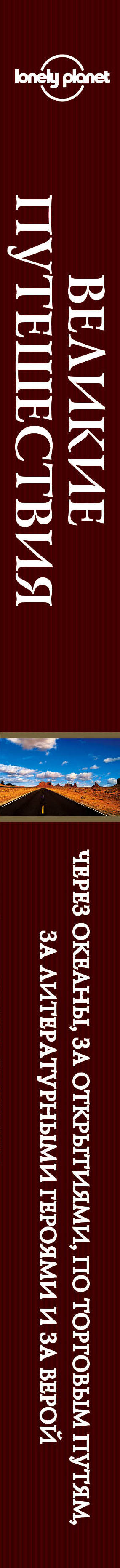 Книга величайших путешествий в истории человечества! С ней вы будете путешествовать по маршрутам Александра Македонского и Магеллана, Марка Твена и героями романа Жюль Верна "Вокруг света за 80 дней".Узнаете, что вдохновило Че Гевару на свой легендарный дневник путешественника по Латинской Америке! Вас ждет 74 тематических маршрута с первооткрывателями и завоевателями, писателями и их героями, святые места паломничества, легендарные сухопутные и морские пути. Устраивайтесь поудобнее, и погрузитесь в завораживающий мир путешествий. Вперед за литературными героями, через моря и океаны. Тысячи километров дорог, бескрайние моря и океаны откроются вам.