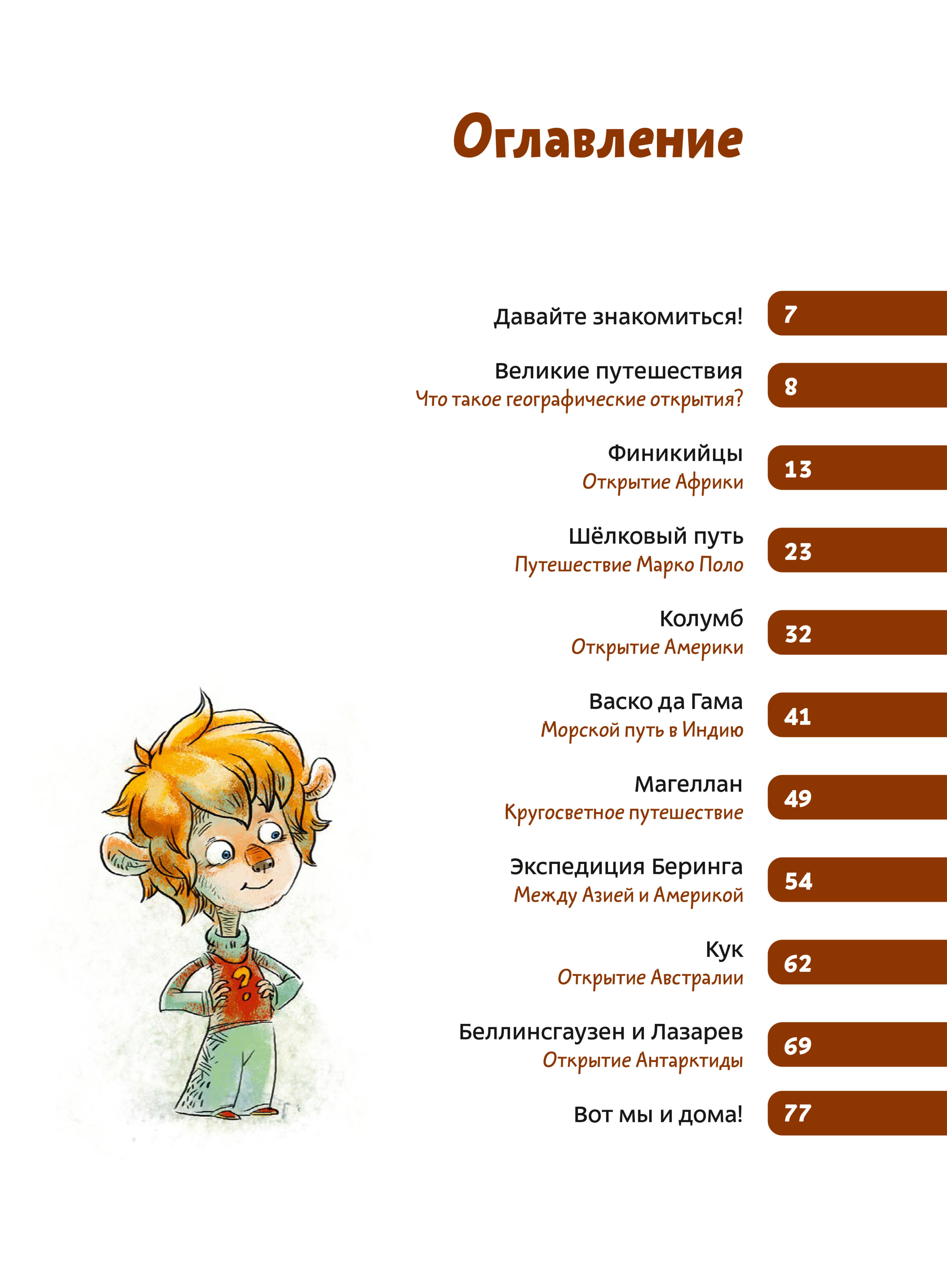 Почему жителей Америки назвали "индейцами", а путь из Европы в Китай - "шелковым"? Почему на карте Птолемея нет Австралии и Америк и зачем с тонущего корабля сбрасывают пушки? Ответы на эти и многие другие вопросы любознательный Чевостик найдет во время незабываемого путешествия по следам знаменитых первооткрывателей! Вместе с дядей Кузей они познакомятся с великими путешественниками прошлого и узнают, как благодаря их отваге и мужеству люди постепенно узнавали нашу планету, наносили на карту новые страны и континенты, моря и океаны. Кто такой Чевостик? Чевостик - симпатичный герой, родом из известного аудиопроекта. Сегодня ребята знают его по энциклопедиям. В серии продолжают выходить книги, которые объяснят детям устройство мира. Дети гораздо лучше воспринимают информацию, когда о мире им рассказывает какой-нибудь сказочный персонаж. Именно поэтому девчонки и мальчишки так любят подобные энциклопедии. Чевостик - маленький человечек, который вместе со своим дядей Кузей совершает удивительные путешествия в мир наук: физики, химии, астрономии, анатомии, геологии и других. Он рассказывает детям о великих географических открытиях, покорении космоса и волшебных химических превращениях. Для кого эта книга? Для дошкольников и младших школьников.| Издательство | МАНН, ИВАНОВ И ФЕРБЕР ООО |