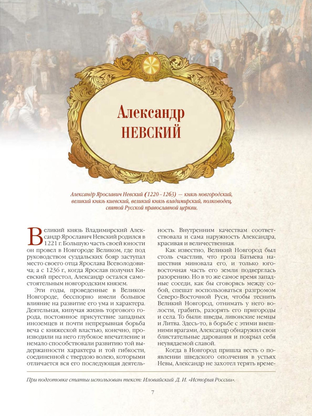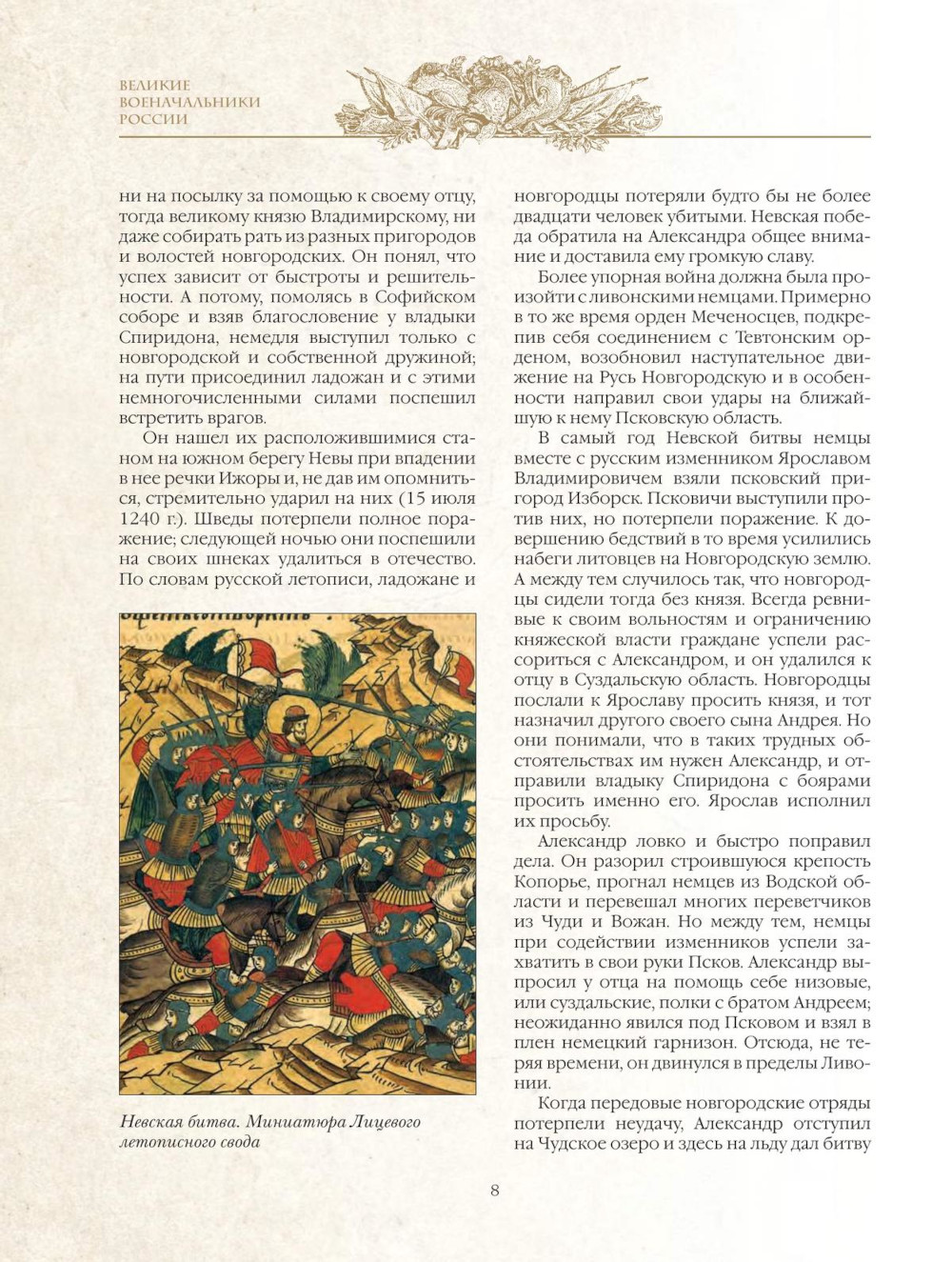 В книге собраны биографии великих полководцев, каждому из которых Россия обязана самыми славными страницами своей истории. Одних мы знаем с детства - Александр Невский, Дмитрий Донской, Александр Суворов, Михаил Кутузов, Федор Ушаков, Михаил Скобелев, Алексей Ермолов… Но есть и имена, гораздо менее известные, но не менее прославленные, - Иван Паскевич, Алексей Шеин, или… царь Петр I, заслуги которого в качестве военачальника и полководца порой недооценивают и сегодня. Эта книга - увлекательная экскурсия по восьми столетиям военной истории России и по судьбам ее великих творцов, одинаково интересная для читателей любого возраста. Читатель узнает самое основное о военных победах, характерах, обстоятельствах жизни военачальников. Биографии знаменитых полководцев составлены на основе трудов лучших российских историков. Издание красочно иллюстрировано произведениями русской батальной живописи и портретами полководцев.| Издательство | Просвещение-Союз |