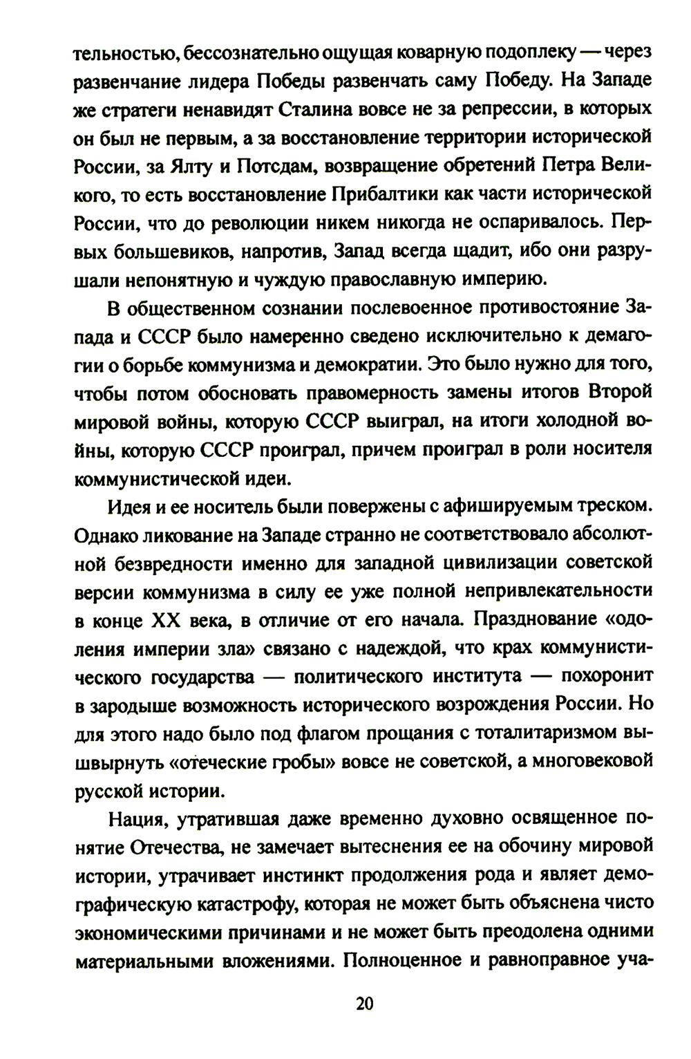 На Западе тиражируется клише, будто Вторая мировая война была «войной за американскую демократию». В Прибалтийских странах прославляют эсэсовских легионеров, хотя народам этих стран в гитлеровском проекте была уготована роль безликого человеческого материала. В Европарламенте и в Совете Европы уже открыто говорят, будто бы война велась между двумя хищниками за мировое господство, а для Восточной Европы победа была не победой, а поражением. Эта книга восстает против сегодняшнего искажения главного смысла Второй мировой войны - величайшей битвы за право народов быть творцами собственной истории. Издание содержит переработанную и дополненную редакцию книги Н.А. Нарочницкой «Великие войны XX столетия», а также подборку документов довоенного, военного и совсем недавнего прошлого, в которых читатель найдет доказательства главных выводов книги.| Издательство | Вече |